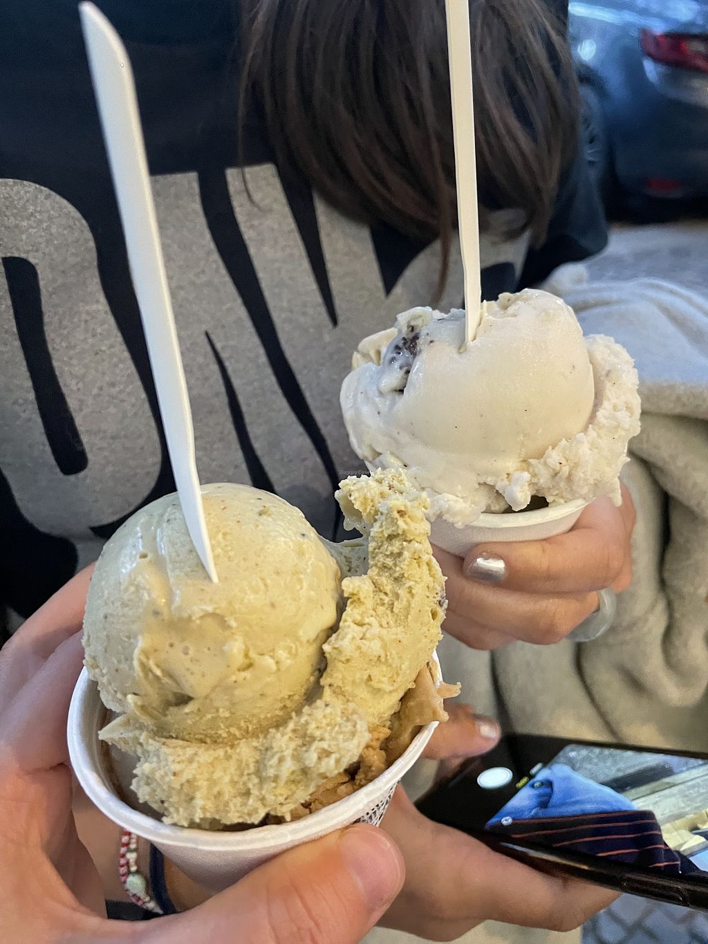 It was raining when we got a sundae to share because it was a large portion. Taat flavours and all vegan in the ice-cream shop 🍨