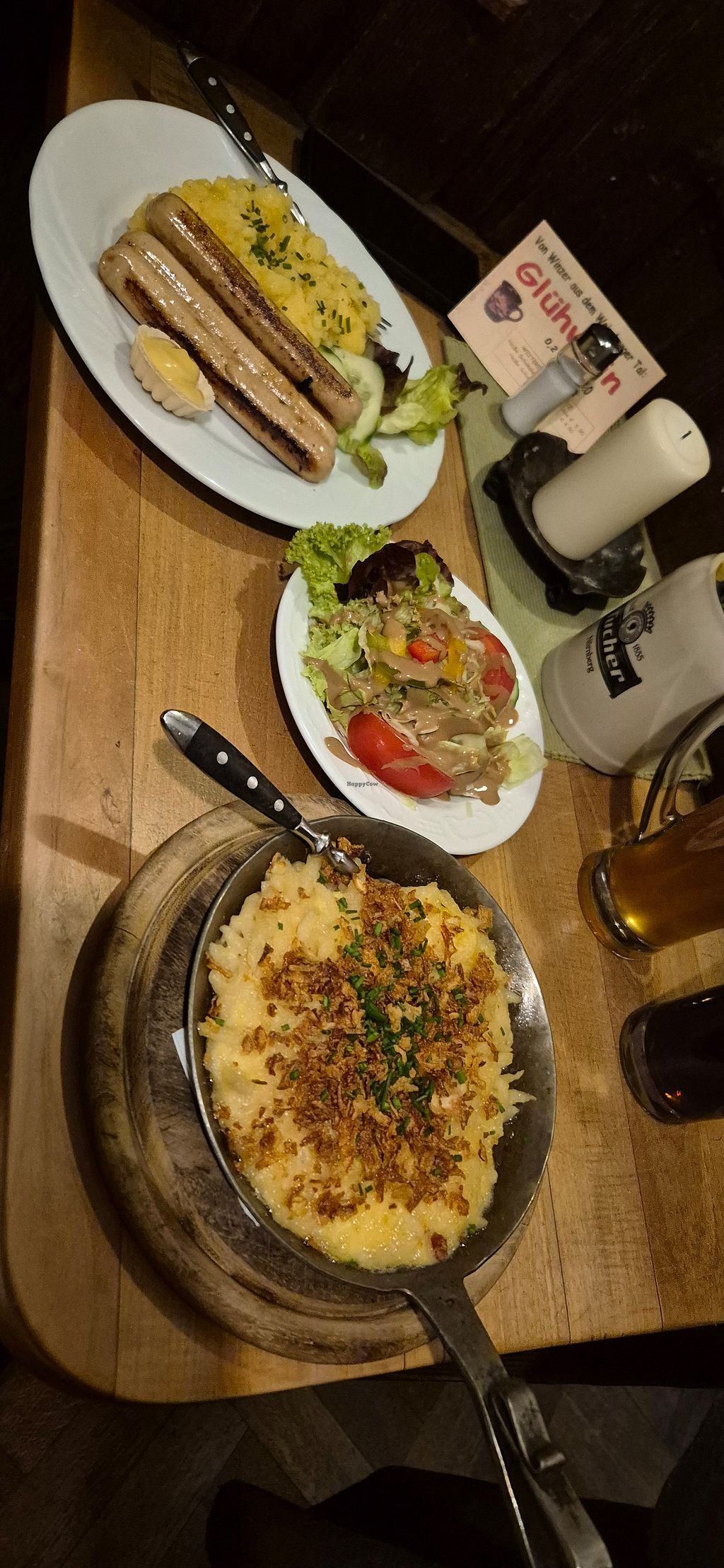 There were 3 vegan options, we had the Käsespätzle and the Bratwürste. They were delicious and big portions. A bit pricey, but good if you want to try traditional german food. The place is beautiful and right on old town.