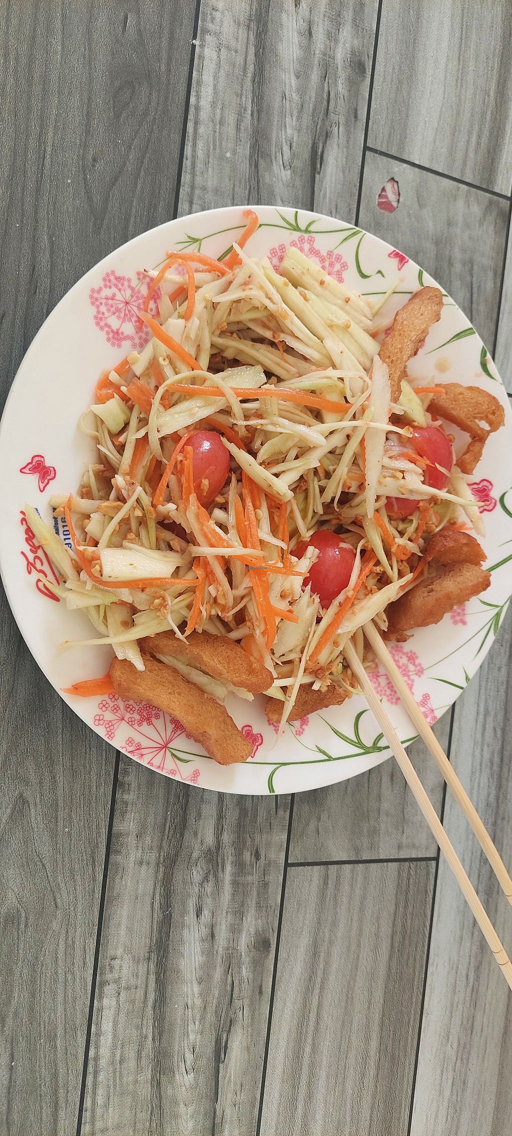 All vegan vegetarian, very tasty, lots of vegetables, healthy (not too greasy or sugary), good portions and price, local thai streetfood. I had a vegetable noodle soup with tofu and a papaya salad.
