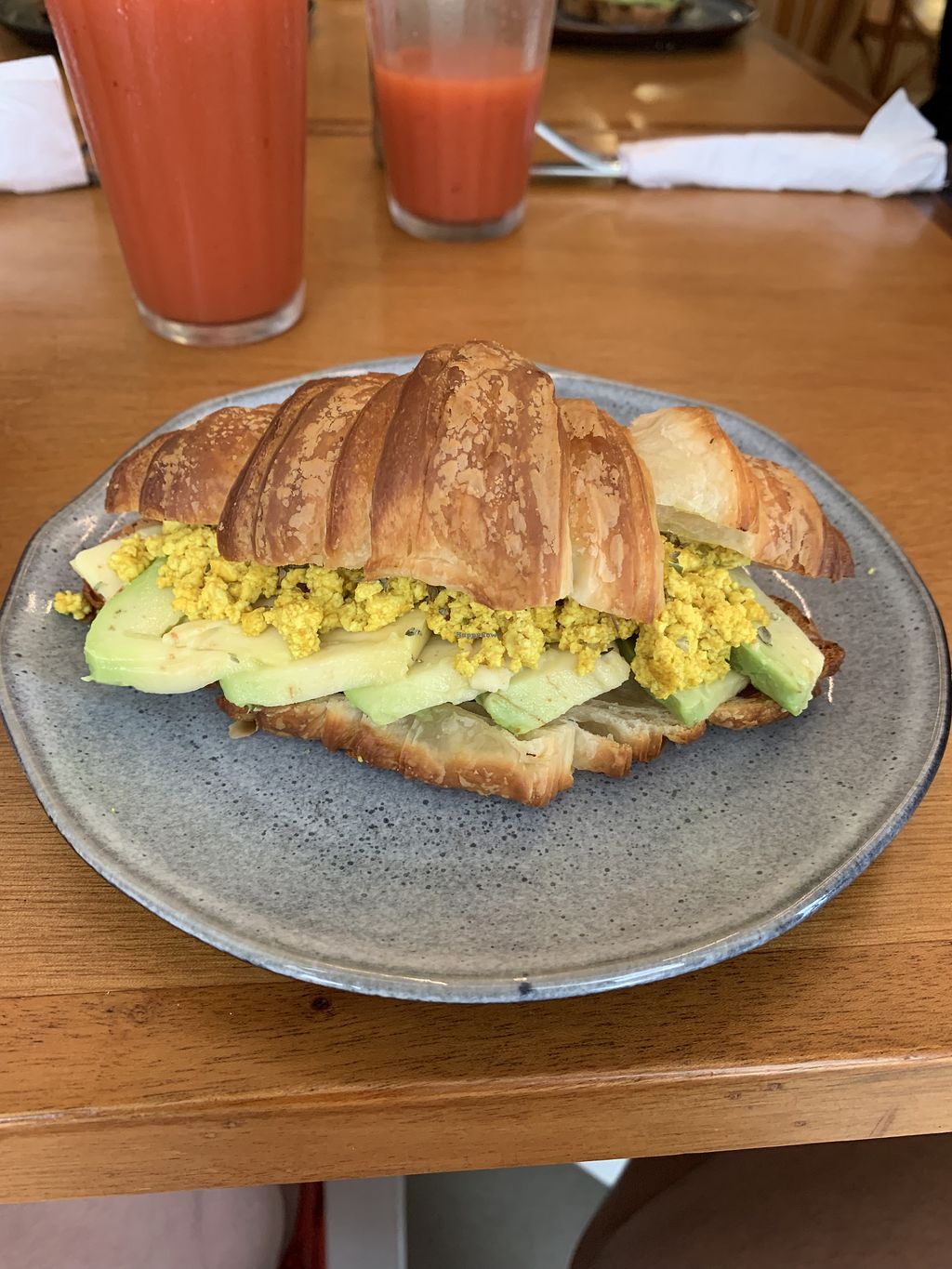 Some fantastic bits at this totally vegan cafe. We went for the croque madam, grilled cheese with smoked tofu, cinnamon roll, juice and coffee.
