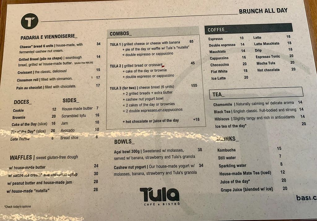 O Tula tem um ambiente muito agradável e é uma excelente opçāo seja para um café com salgado/doce ou um almoço caprichado. A localizaçāo também é bastante conveniente, colado na praia de Copacabana.