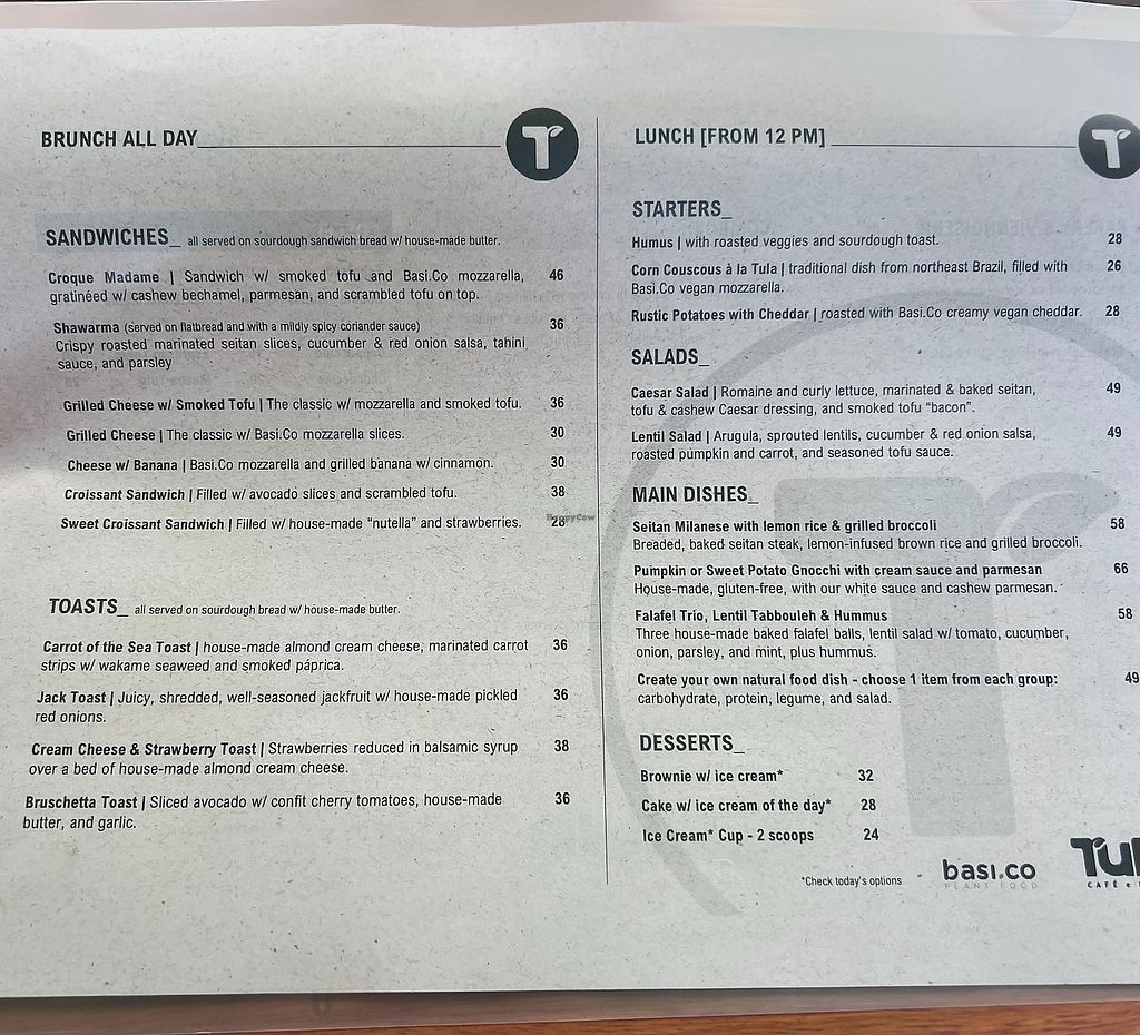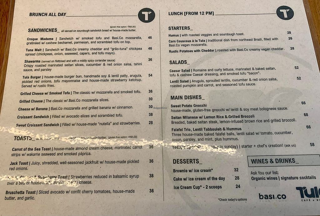 Tem um cardápio vasto com potencial imenso: brunch, salgados, toasts, entradas, pratos principais, bebidas e sobremesas.