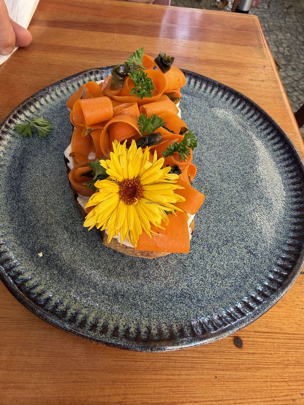 Visiting from the US and was worried about the language barrier but they had an English menu and they also spoke English! Menu was explained well and we ate it so fast I forgot to take pictures! We had the Shawarma wrap and smoked tofu grilled cheese and both were absolutely delicious. Staff was super friendly also.