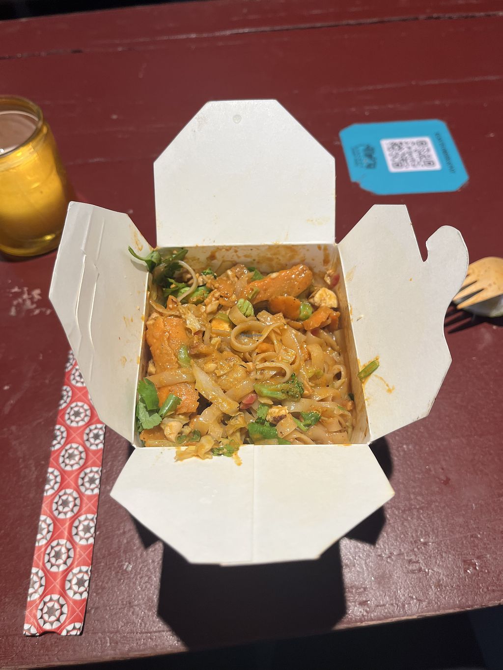 Very tasty noodle box! Lots of vegetables and tofu! Opion to add chili for more spice