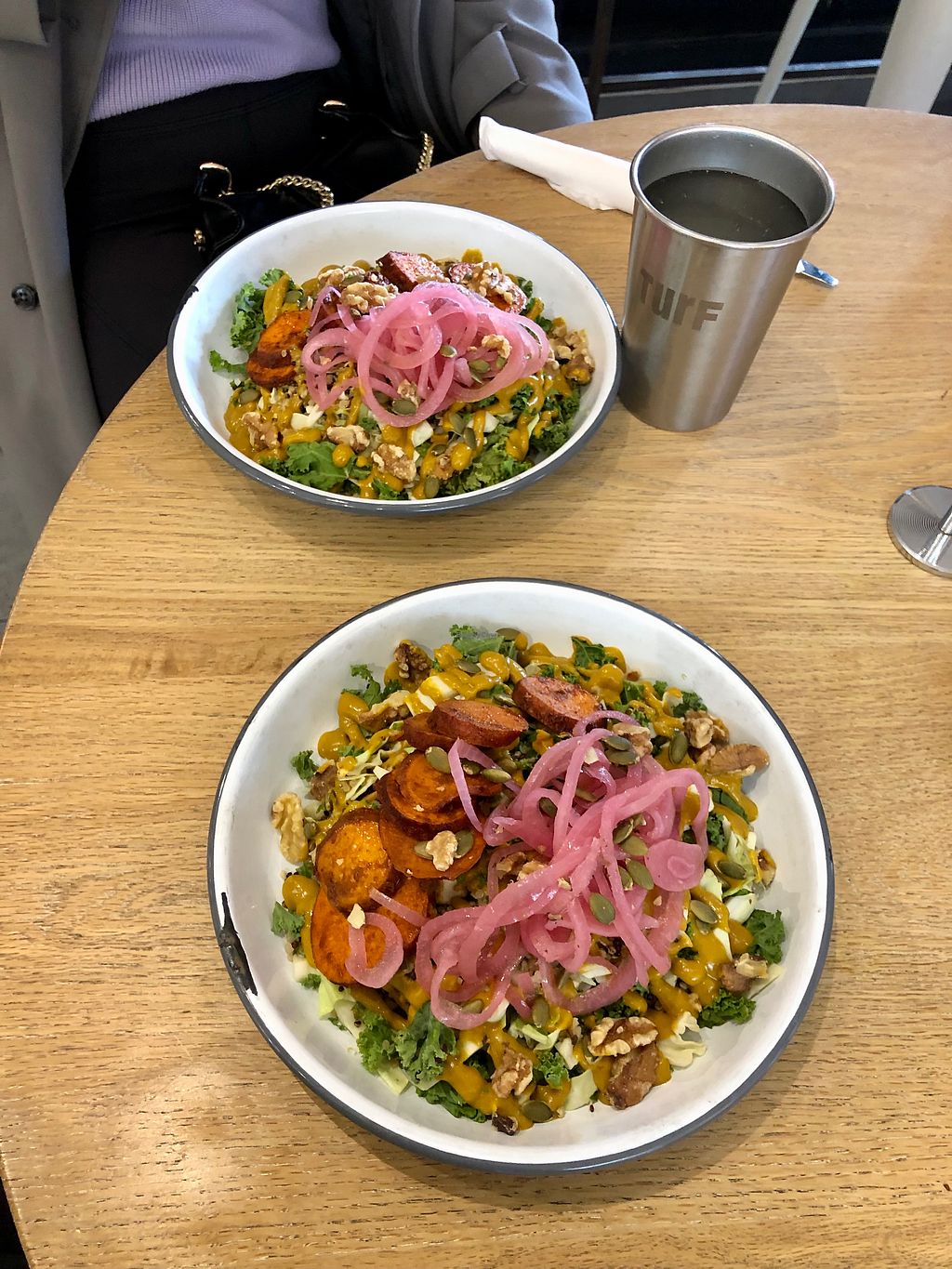 This place serves health-conscious food with plenty of vegan options, including desserts and baked goods. The Trilby's Power Bowl (which was basically a quinoa salad with roasted yam and tempeh) was flavorful and nutritious, but a bit dry, and the portion size was small for the price ($20). The vibe was a bit strange too - it felt a bit busy and rushed, not exactly the place to relax and enjoy a meal or drink, with mostly high-top seating and what looked like a gym next door.