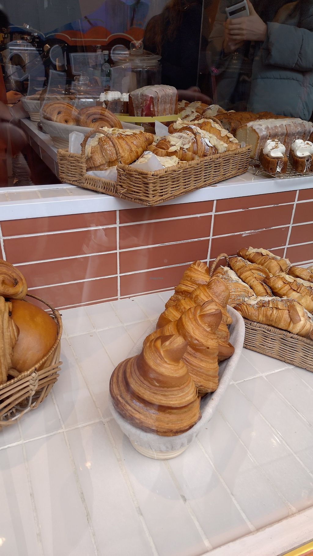 I got the almond croissant and the hazelnut frangipane. The pastry for both was fantastic. The filling for the almond croissant was a bit too heavy and sweet and there was a bit too much for my liking but that's my only criticism. The filling for the hazelnut frangipane was amazing and the cream on top was so light and fluffy. Good coffee too. So amazing to have a vegan bakery in Dublin city.