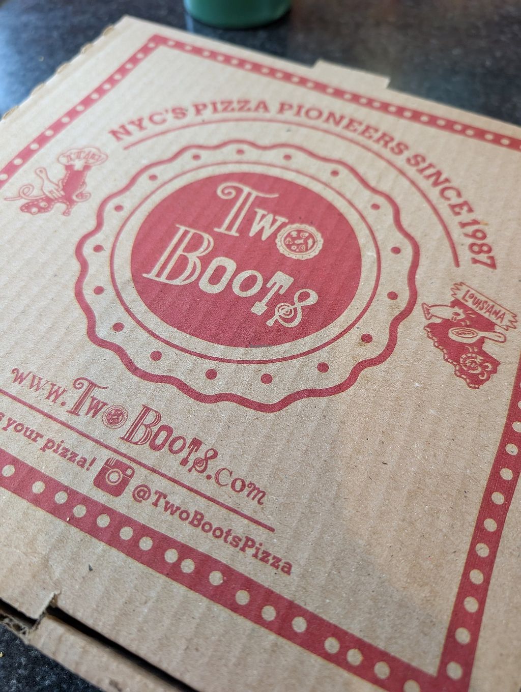 Two boots offers accessible vegan pizza. It’s nothing to write home about. They have really unique flavors and more options than most pizza spots but it’s all made with artificial tasting cheese, and really only tastes good if you’re drinking.