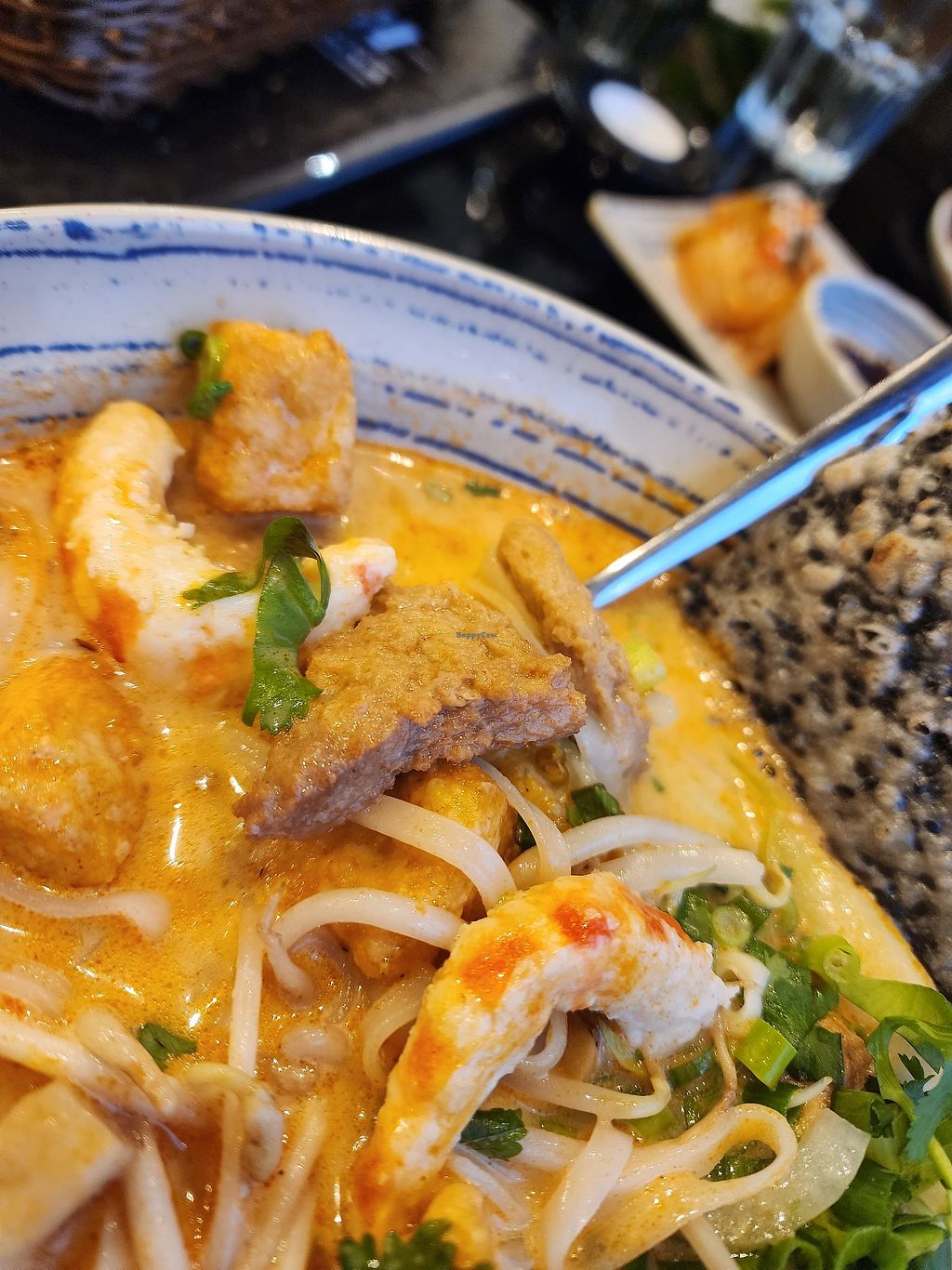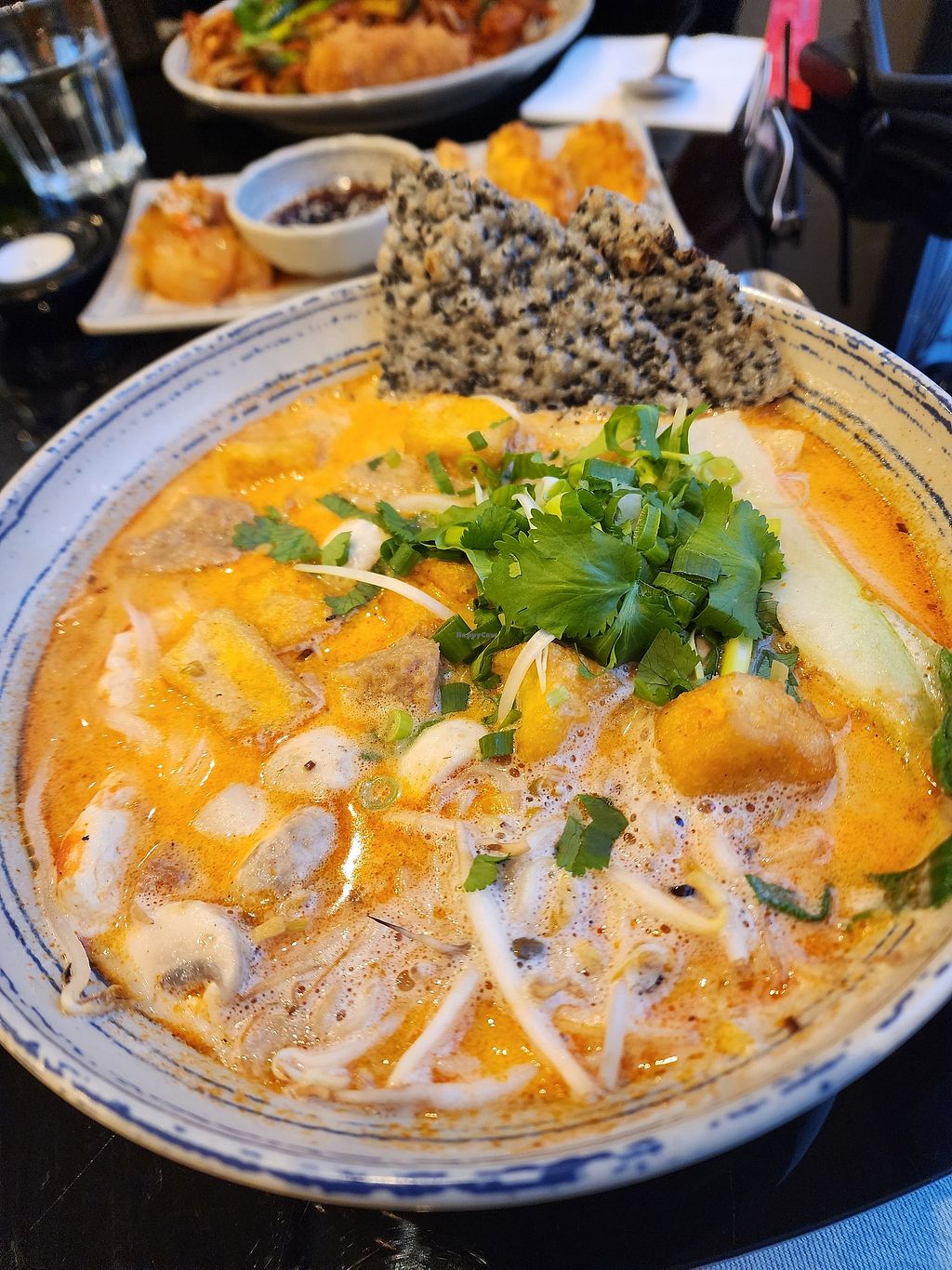 We ordered the summer rolls (2 huge rolls), the power balls (like battered chicken balls), the wonton soup (so big and tasty!) And the Laksa (so rich and tasty - full of tofu, vegan prawns and chicken).