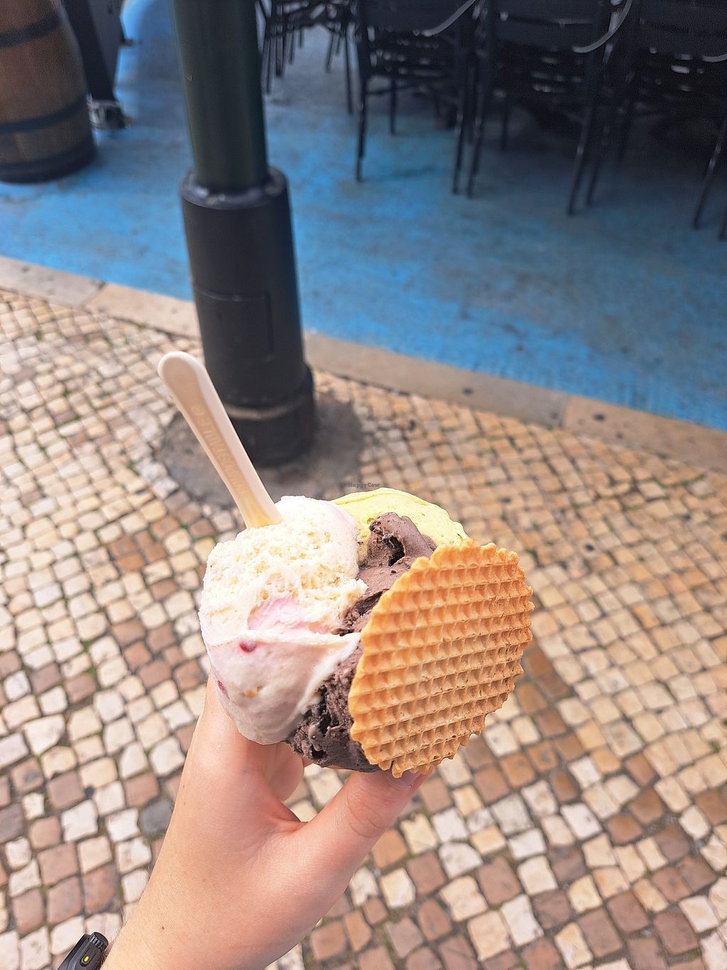 Small place with between 5-10 flavours and vegan cones. €3.70 for two flavours in a cone which I thought was very reasonable. Super tasty and creamy but melts in seconds in the Lisbon heat 😅