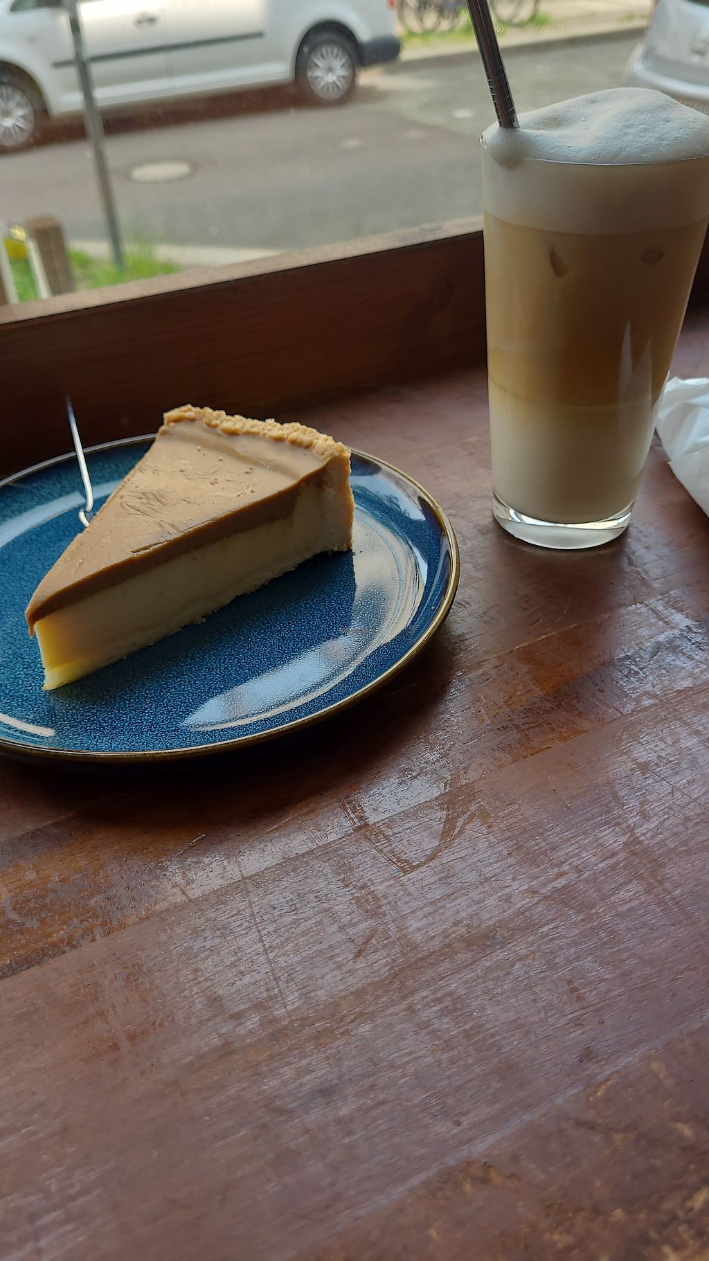 I had a carrot cake and a chai latte. They multiple types of plantbased milk. Many options in cake and also you can eat burgers, pancakes and other things. Very nice, modern interior. Friendly staff.