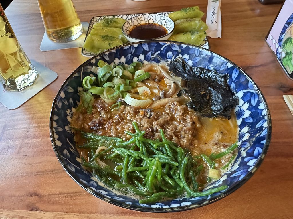 Die Ramen waren lasch gewürzt, hatten zu wenig Brühe und Toppings. Gyoza und Kimchi waren richtig lecker.