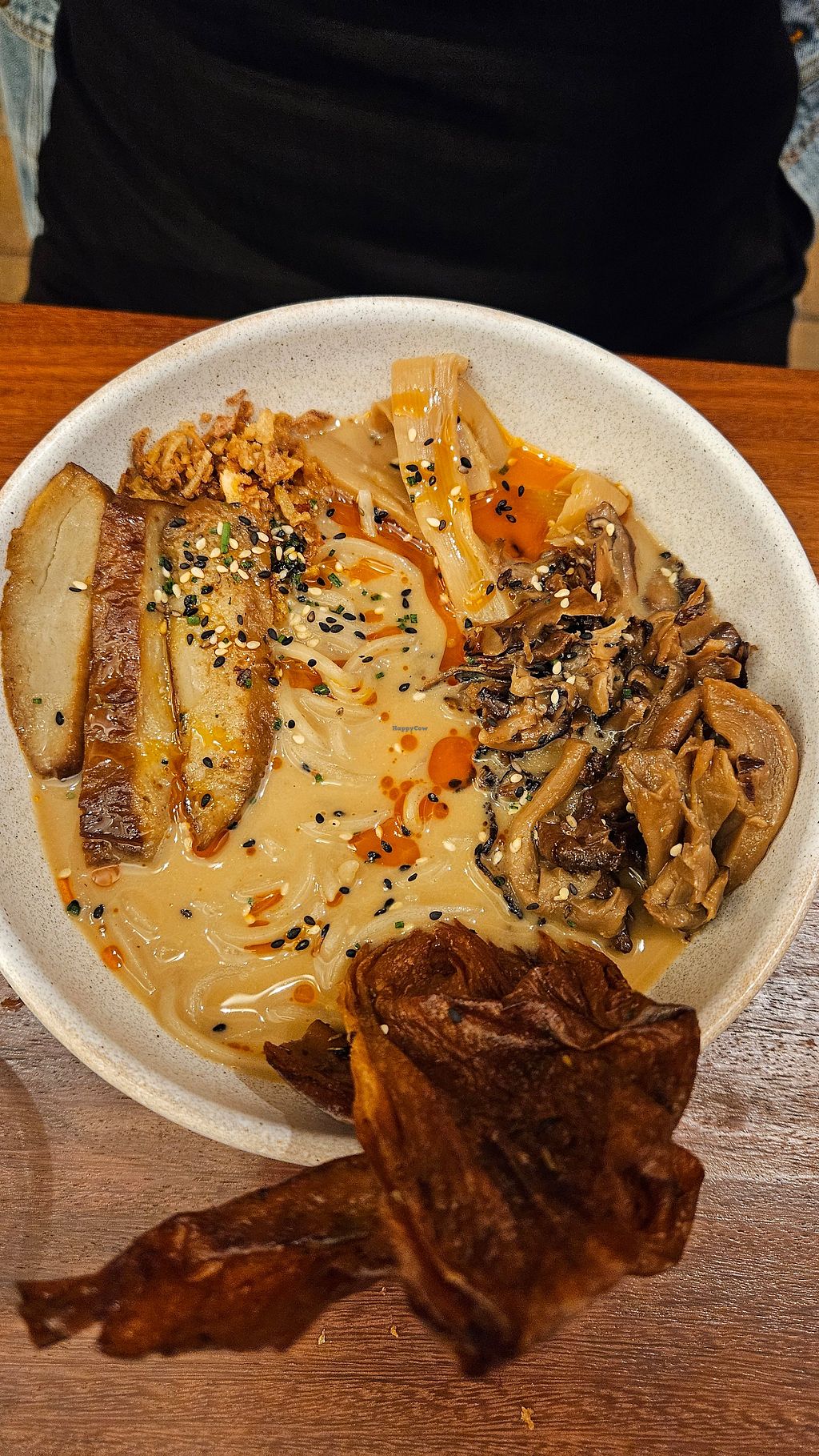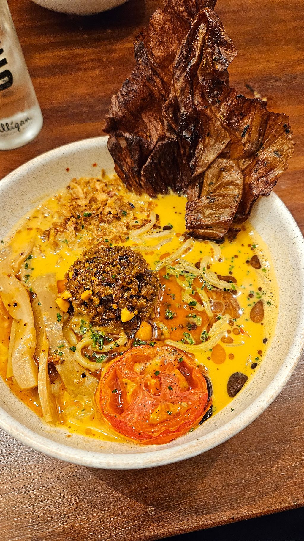 One of the best ramen restaurants I've been to. They make everything from scratch e.g. noodles, seitan etc. You can really taste the quality. If I had to be fussy, I'd say that the crispy soya curd (chicken skin) wasn't uniformly cooked and 80% of mine was verging on being burnt - the 20% that wasn't, was delicious!