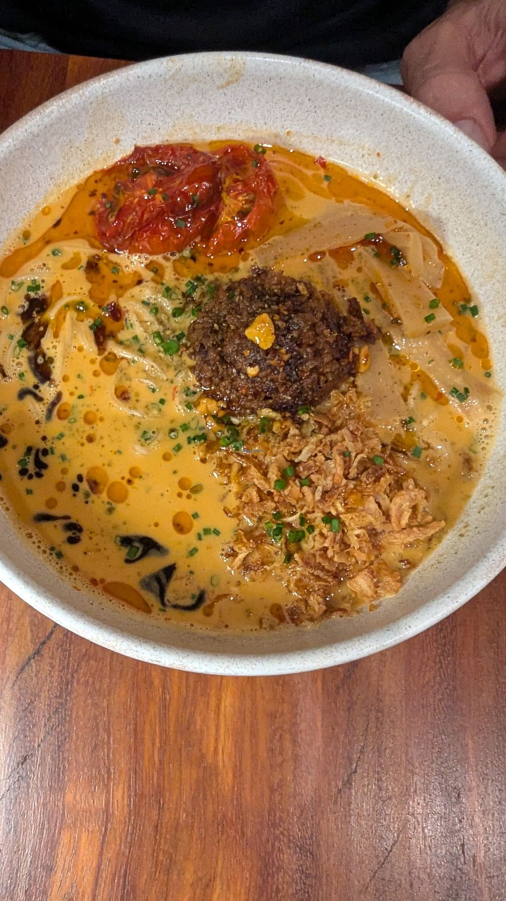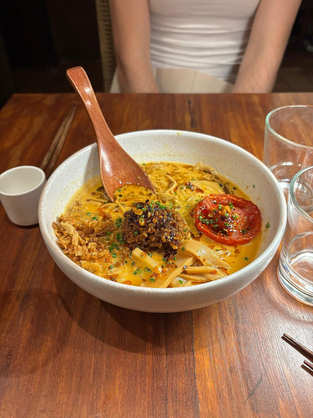 El ramen es uno de mis platos favoritos y he de decir que este es uno de los mejores que he probado 100% vegano. Trato muy amable y atento. Con ganas de repetir para probar más platos.