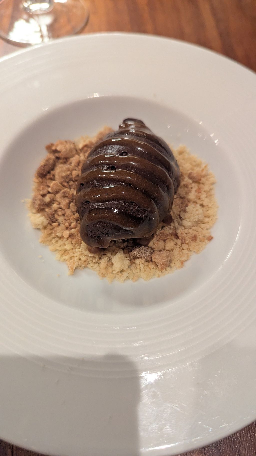 I had the gyozas of the day, the creamy mushroom ramen and the ganache as dessert, it's absolutely delicious. Everything was super tasty, I loved it. Also had a glass of white wine albariño.