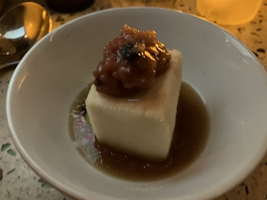 Ordered the eggplant (note that this dish is served cold) and tempura (delicious) as appetizers followed by a ramen with a fake egg on top (made from tomatoes I think the server said). The food is thoughtfully prepared and you can see into the kitchen from the bar stool area. They take pride in their dishes here - delicious across the board. Worth an Uber ride from across town to try this restaurant. You’ll need a reservation so book before you go.