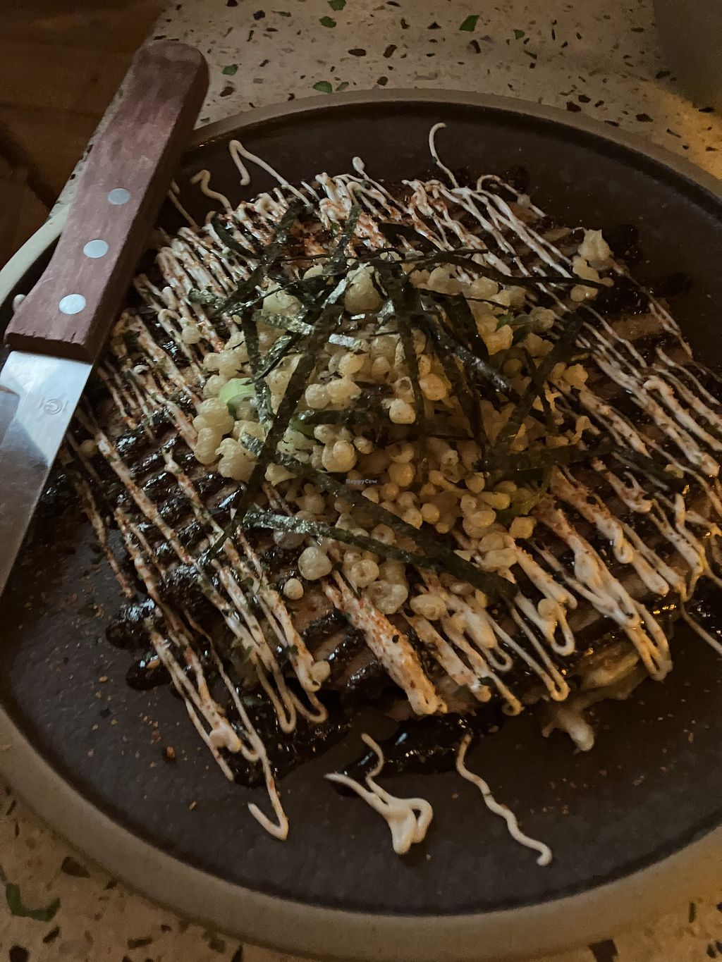 Had the Okonomiyaki, Gyozas, and their curry Tonkatsu ramen with tempeh. Everything was super tasty!