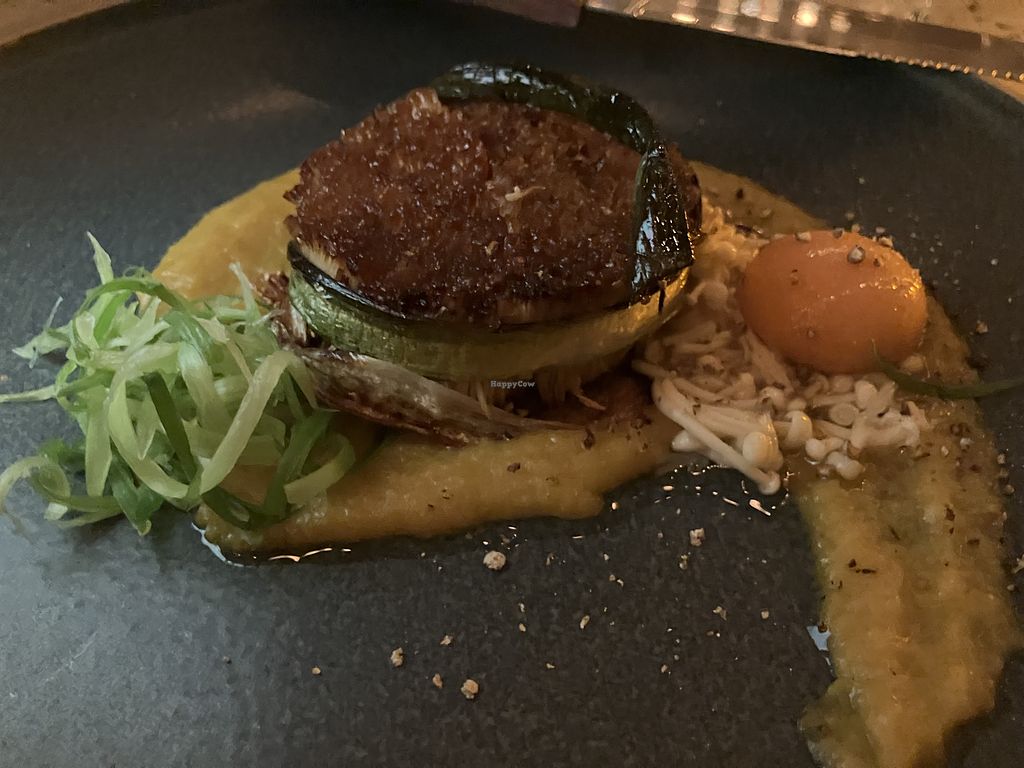 kabocha) et le curry épicé et tempeh tonkatsu. Tous les plats était délicieux avec des très belles présentations. L’aubergine était super bonne et mon plat préféré- il ne faut pas le rater ! Le curry contenait une « jaune d’œuf » fait à partir d’une tomate ! Les portions étaient généreuses. Nous avons terminé avec le dessert wagashi umami qui était également beau et succulent. En gros, c’était une expérience de fine dining mais pas trop cher - super rapport qualité prix.