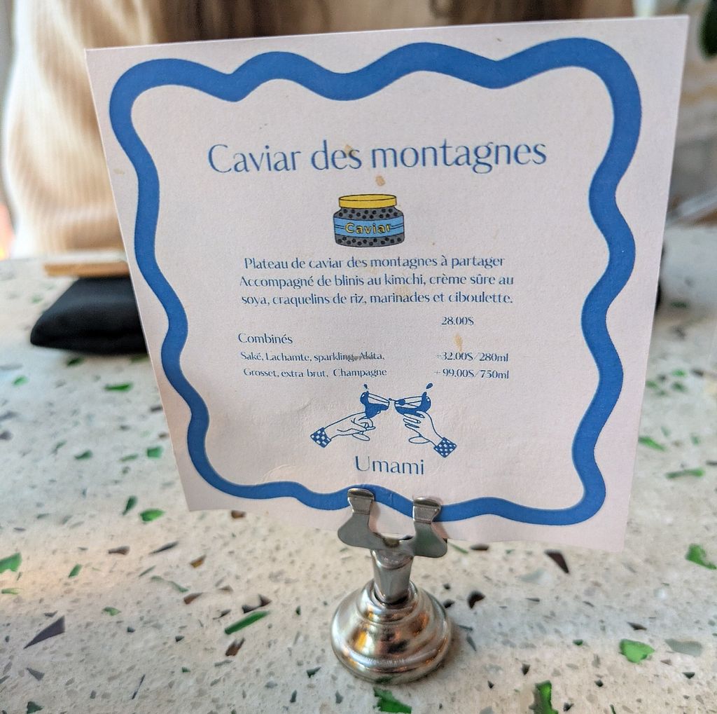 Everything was amazing! I took the cold ramen (tofu, ginger, seaweed, tomatoes) with a creamy sesame sauce. The portion was great for the price (less than 20$ without taxes). The service was on point (staff were really friendly and took time to explain and answered questions). I took a mocktail (a little pricey for the quantity) and it was delicious. "UMAMI RAMEN & IZAKAYA is the very first fully vegan ramen restaurant in Montreal."