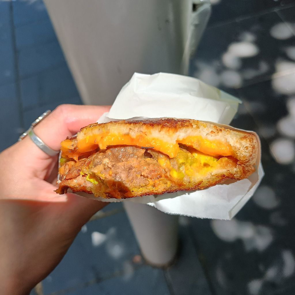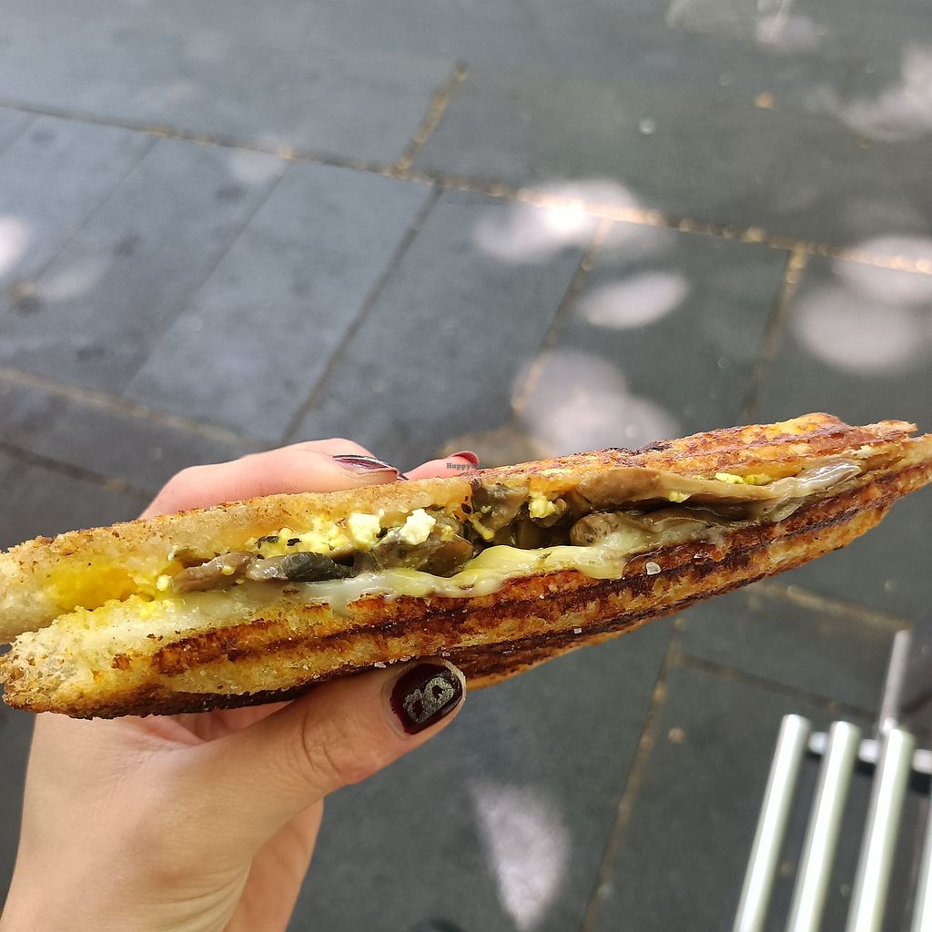 pork, pickled apple, garlic sauce, cheese jaffle! new special