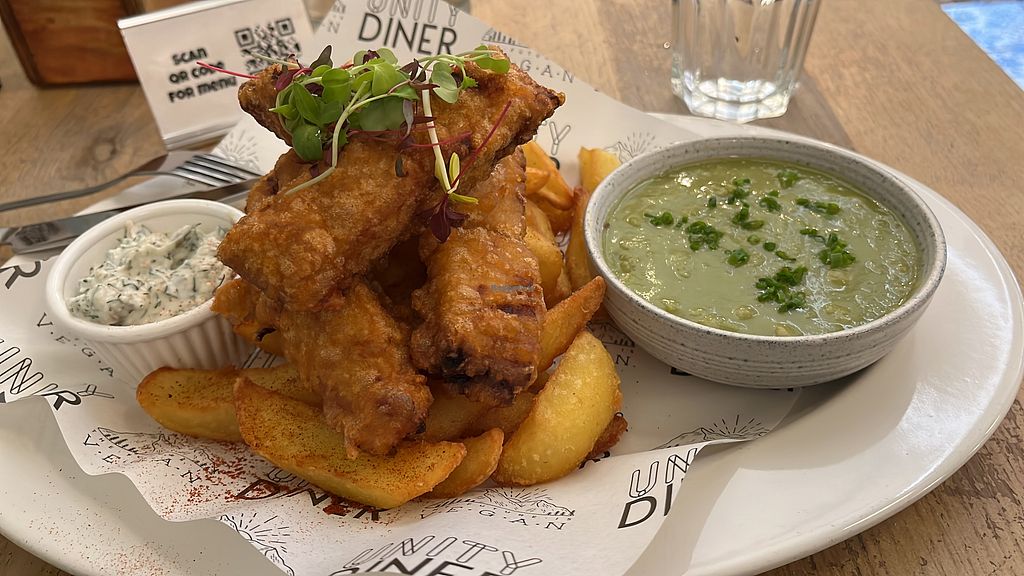 Unity Diner offers a fully vegan menu plus cocktails with classics such as Fish & Chips in a vegan version. The Fish & Chips were simply fantastic as well as the other dishes we tried - from starters to mains to desserts everything tasted amazing and was very well presented.