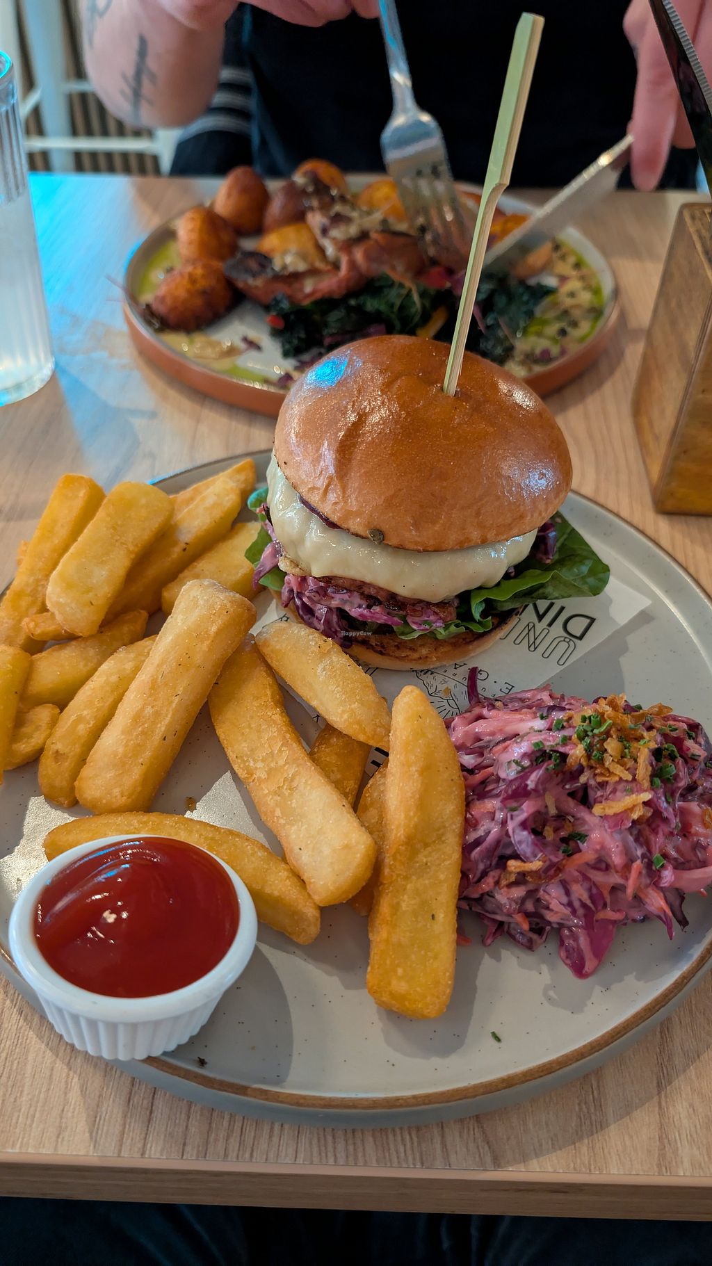 Great service and meeting on arrival ! A menu that really caters for all ! We had the bacon burger and tofish and chips with a side of cheesy chips - the chunky chips are SO GOOD! Would highly recommend! Also a small donation goes to an animal sanctuary on your bill - a great touch!!