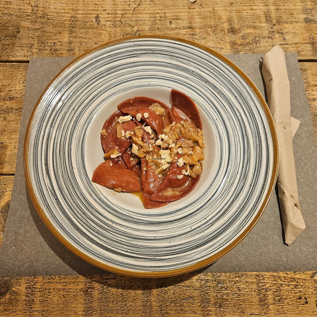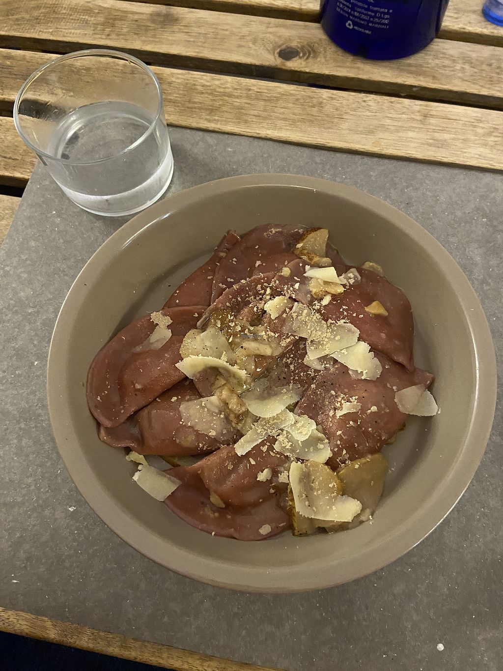 I had the most Bologna dish available, the gramigna pasta, it was very tasty, but mostly just pasta with cream. However, i asked for the side eggplant and the small plate cost 8€ 😐.