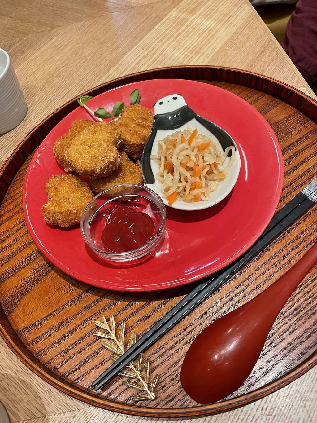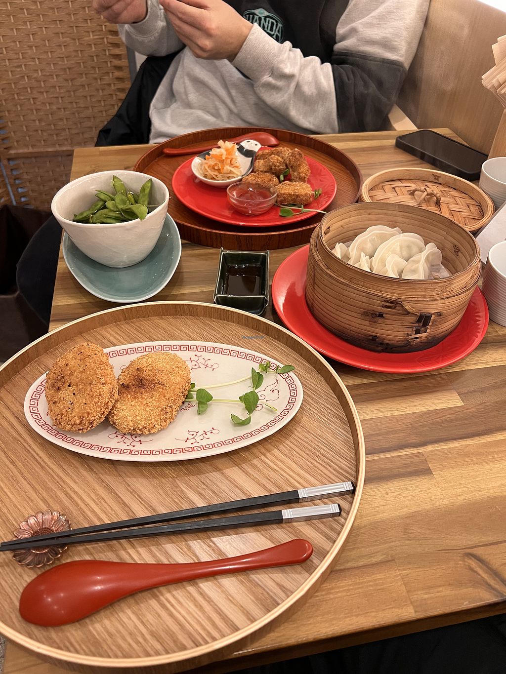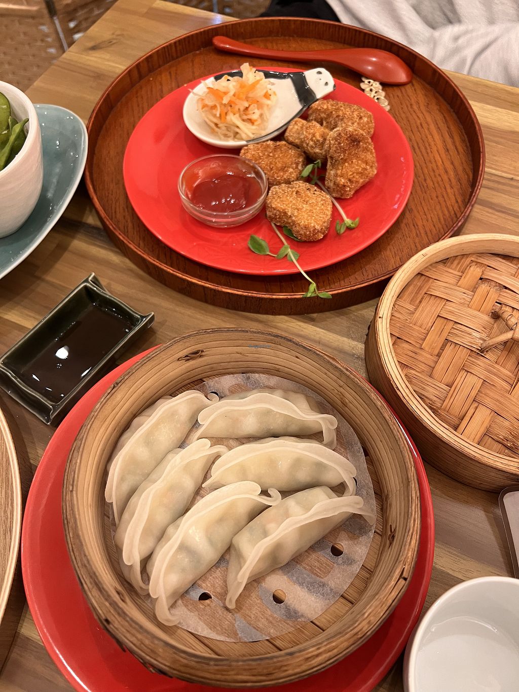 Creamy croquettes, edamame, vegan chicken nuggets & steamed veggie gyo…