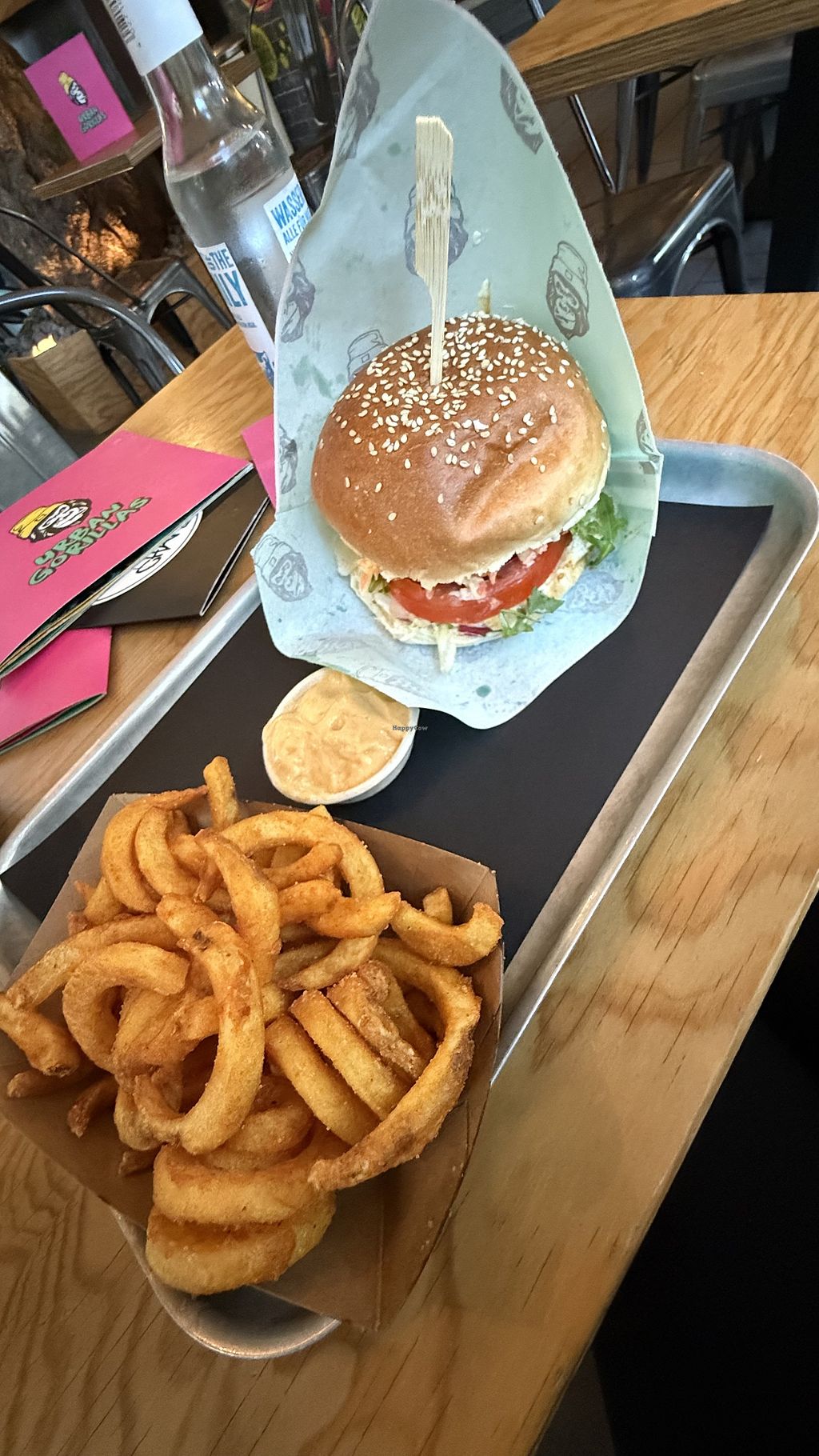 I love that it is all vegan first. I enjoyed my power burger, which had the perfect amount of spicy. The coleslaw is on the sweet side rather than vinegar but is good. My only complaint is they need more onion in their onion rings!