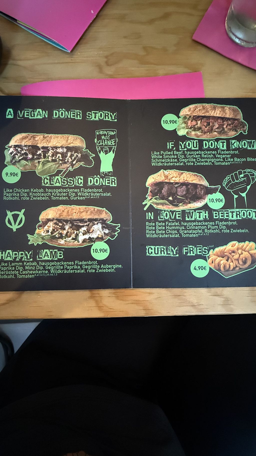 Everything is vegan and the menu is huge. So many different Pattys to choose and to combine with toppings, which you do not get everywhere.