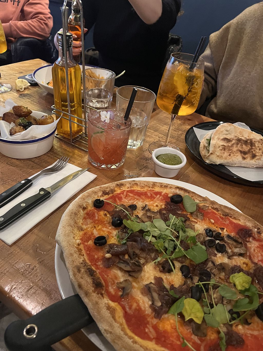 Read morePros: Good pizza, Good sides/starters, Amazing drinks