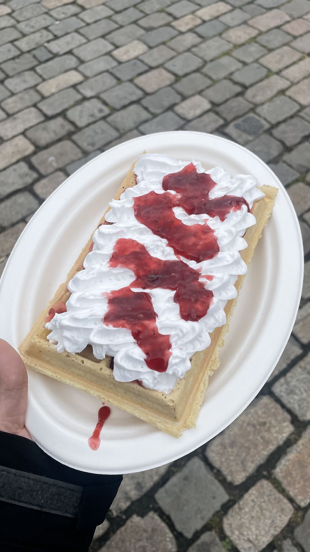 The thing I miss the most since turning vegan might be waffles! 🧇 It was so nice to fill this craving today 🥰🥳. They even have a nice vegan chocolate sauce and topped up my waffles with Oreo’s. They could even put sorbet and they even do a vegan ice cream cone 🍦. It’s a small unassuming stall on the Main Street of Bergen and there are no signs that say vegan anywhere, but the allergens list of the waffles only say wheat (not egg or milk) and the staff are quite knowledgeable about veganism😄