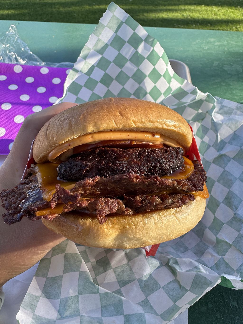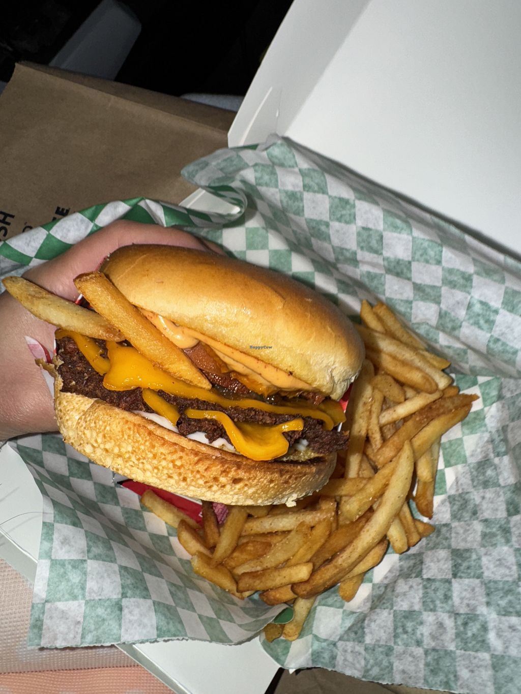 Holy [censored] so damn good. Non vegan bf and I tried the south of the border and dirty burger both SO MUCH FLAVOR. The south of border was brilliant Mexican American stamp of approval whoever thought of that genius!!! Best of both worlds. Dirty burger was also amazing burger was a little crispy too loved that. Fries were great and we tried the vegan fried Oreos also delicious. So happy about this place we can’t wait to go back 🤎 100000/10 you NEED TO GO!!!
