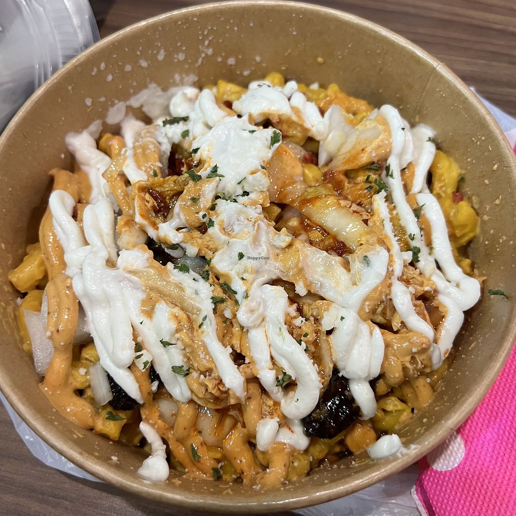 Read moreThe only downside was the pickup instructions. Although the text provided an address, it didn’t mention that the pickup place was located inside another restaurant. My husband and I drove to the address listed on the HappyCow instead and couldn’t find our order. Since it was also raining, it made things more frustrating. We ended up calling and were then told it was inside a restaurant, so we had to drive back to our original stop. Unfortunately, by the time we picked up the food, the fries were already soggy.