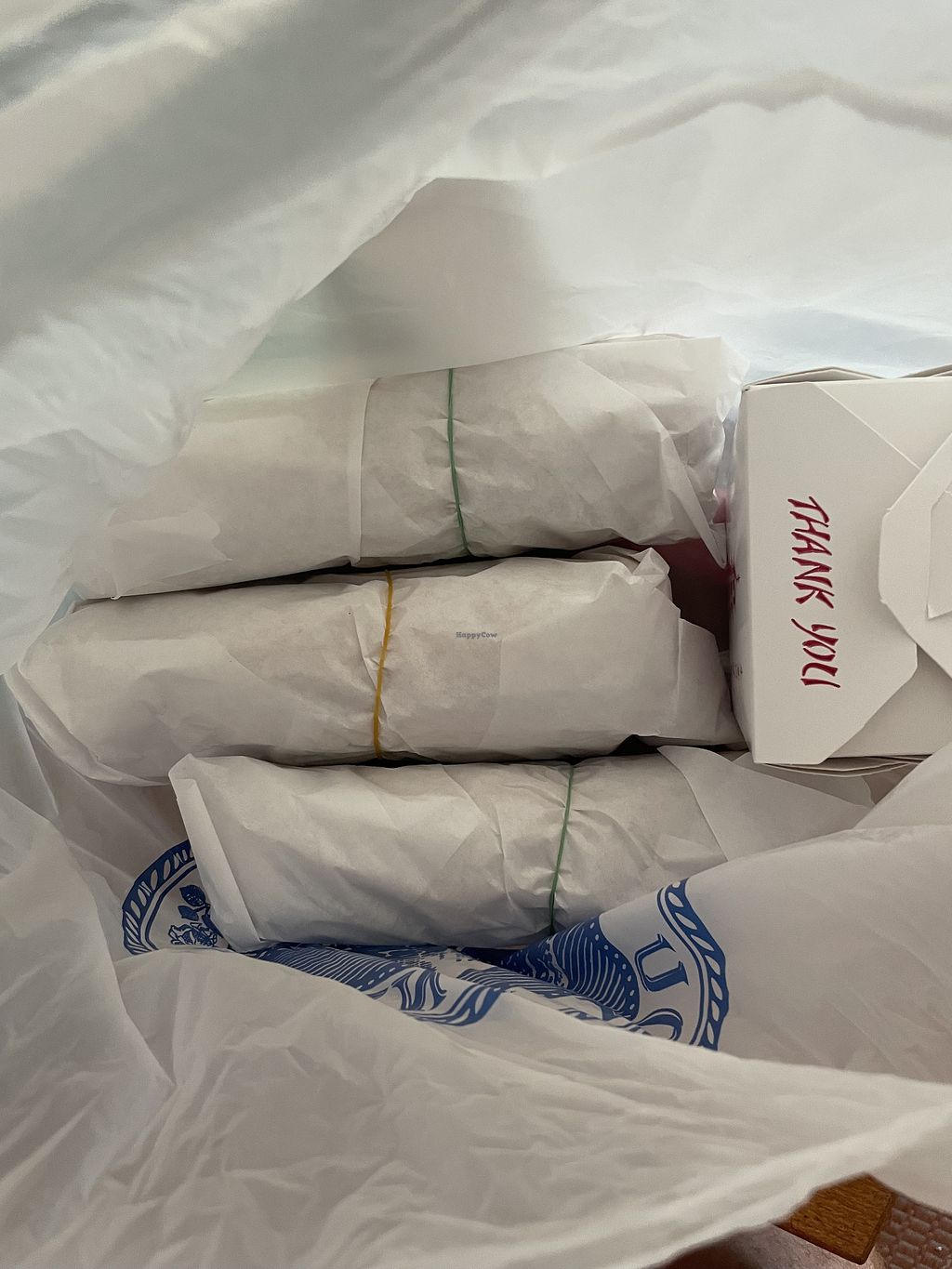 Before I explain, note that the mayo is NOT vegan! I walked up to the cart being closed up, despite online saying they were open. I decided to just stay and study the menu, and eventually, a woman came over and said only #1 or #4. I said 4 and asked if it was vegan. She said yes, vegan, yes yes. I said okay. I then asked again, if she was sure? Again, yes, yes, vegan. Then, a chef came over, and I stopped them and asked that it is indeed vegan. They said yes. Then a guy came over to ask me a question, and I told him I just wanted to make sure it's vegan. He says yes, everything vegan. I said okay because I was mainly concerned about the mayo. He then says oh the mayo is egg. I said what? I said vegan and was told it's vegan. He says no, it has egg, so I don't want egg? I said no, vegan. No egg. He then told the chef no mayo. Wow! So yeah, I wouldn't be surprised if they sealed the egg rolls with actual egg as well. I've encountered this exact scenario elsewhere too with saying it's fine cuz it's just egg. *face palm. Despite the giant banner outside that says vegan and everyone there saying it's vegan, just make sure you cover all your bases of possible animal products and tell them none of it. Eggs, butter, whatever else! Now, on to the actual food. For $6, it is what it is, but it was pretty sad, to be honest. Mainly bread, there was no joke, 3 pieces of carrot shreds. Three. You could actually count them out. Everything about it was pretty bland. I will definitely be skipping this place.