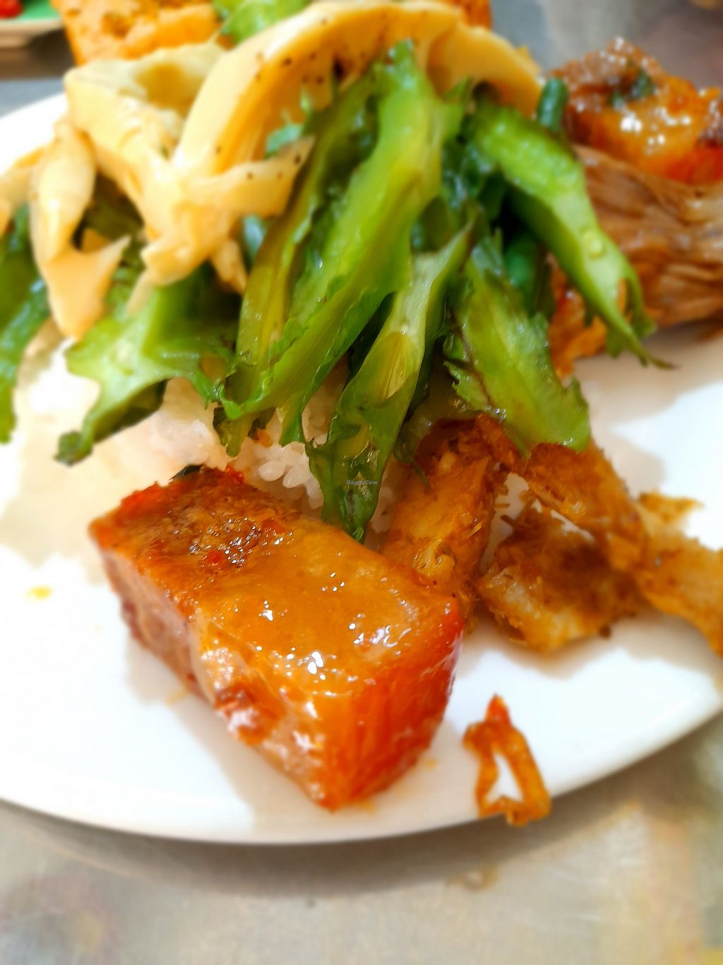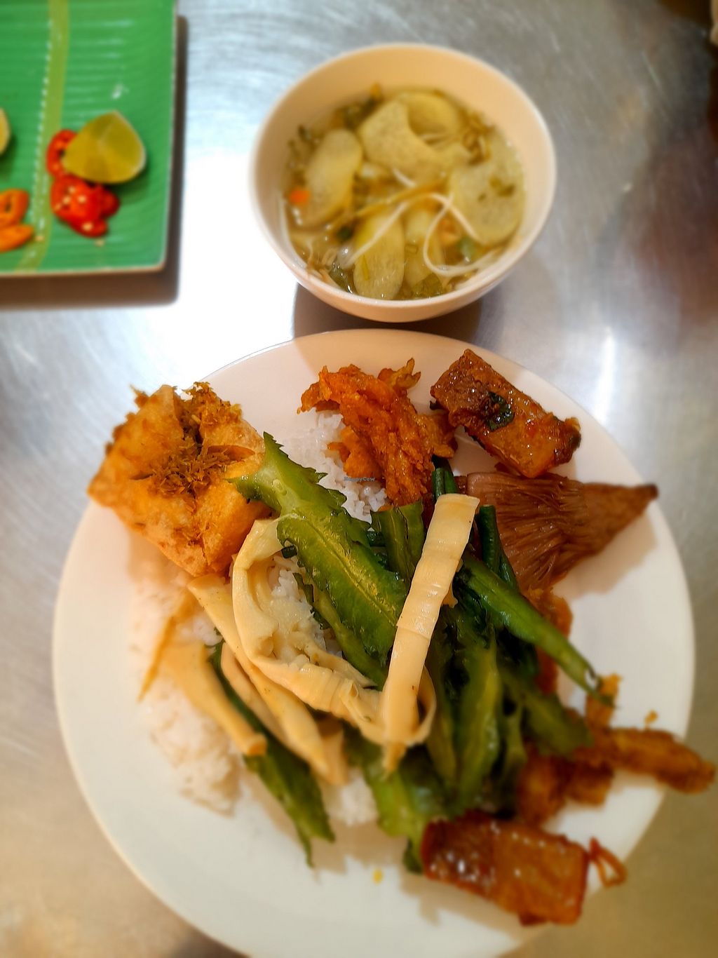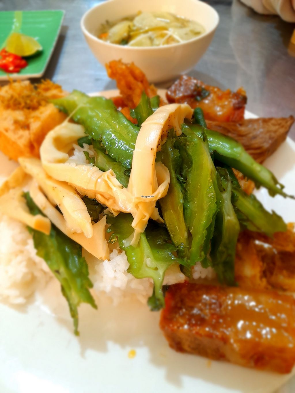 A fully vegan restaurant serving traditional Vietnamese food. Mostly com chay. Also has a menu on the wall. In addition has a little shop inside selling various vegan products. Run by a Buddhist family. No English spoken and no menu in English. Open Mon-Sun 5:00am-10:00pm.