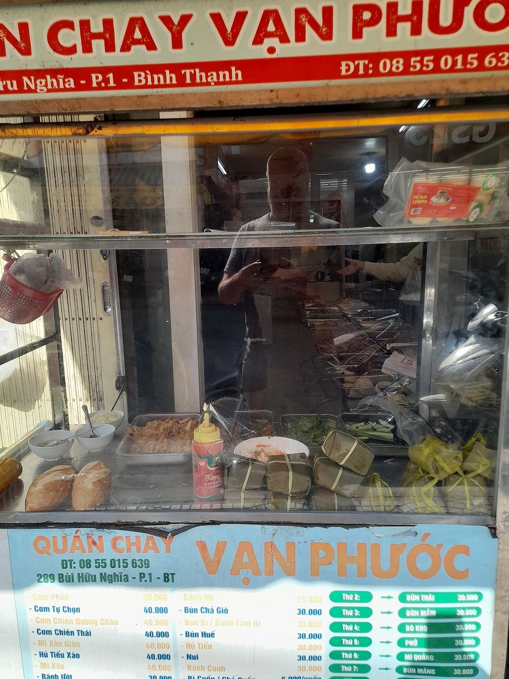 Brilliant com chay at 30.000. Excellent vegan banh mi at only 15.000. Great selection to choose from. They also have a menu on the wall. This is the second all vegan restaurant I found on the same street on the same morning. Friendly staff. No English spoken and no menu in English.