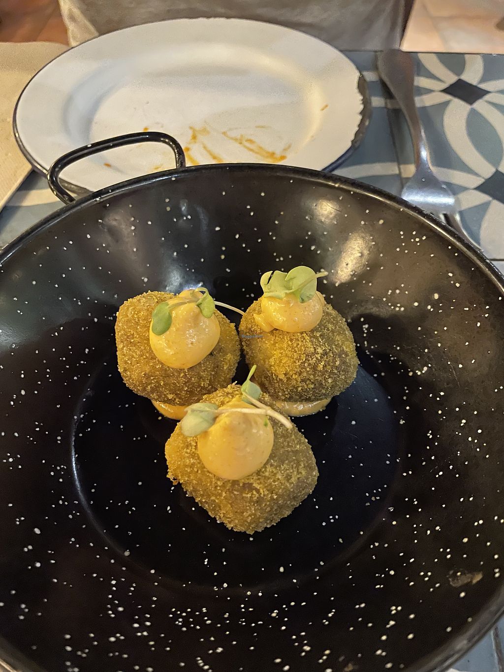 Ambiente é bem agradável, atendimento bom, pedimos o croquete de cogumelo, a apresentação é nota 10, mas era muito picante para o nosso paladar, o que dificultou até de sentir o sabor rs