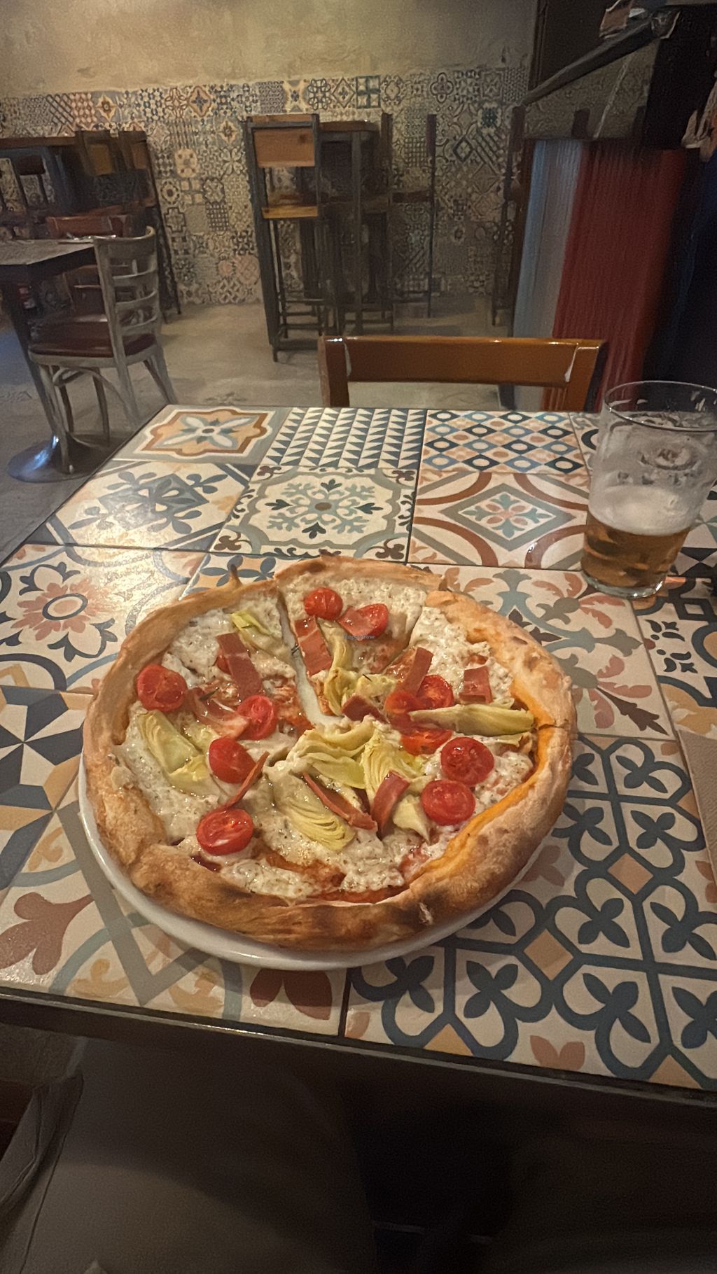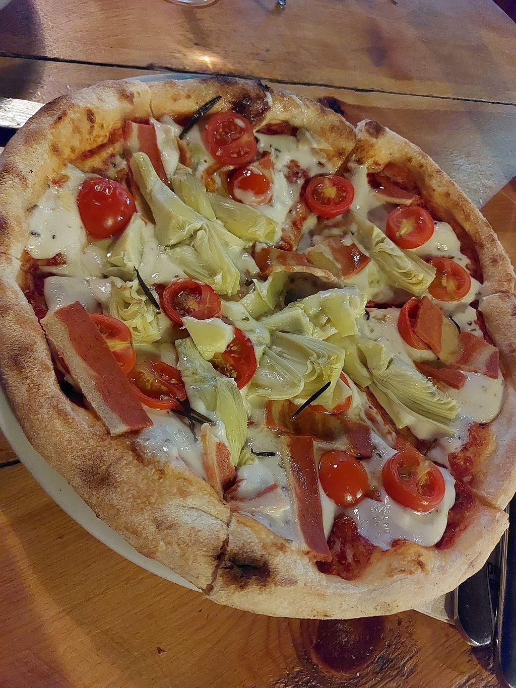 The pizza was great, with their own homemade ‘cheese’ sauce and artichoke topping. The crust is always vital on a pizza and they nailed it.