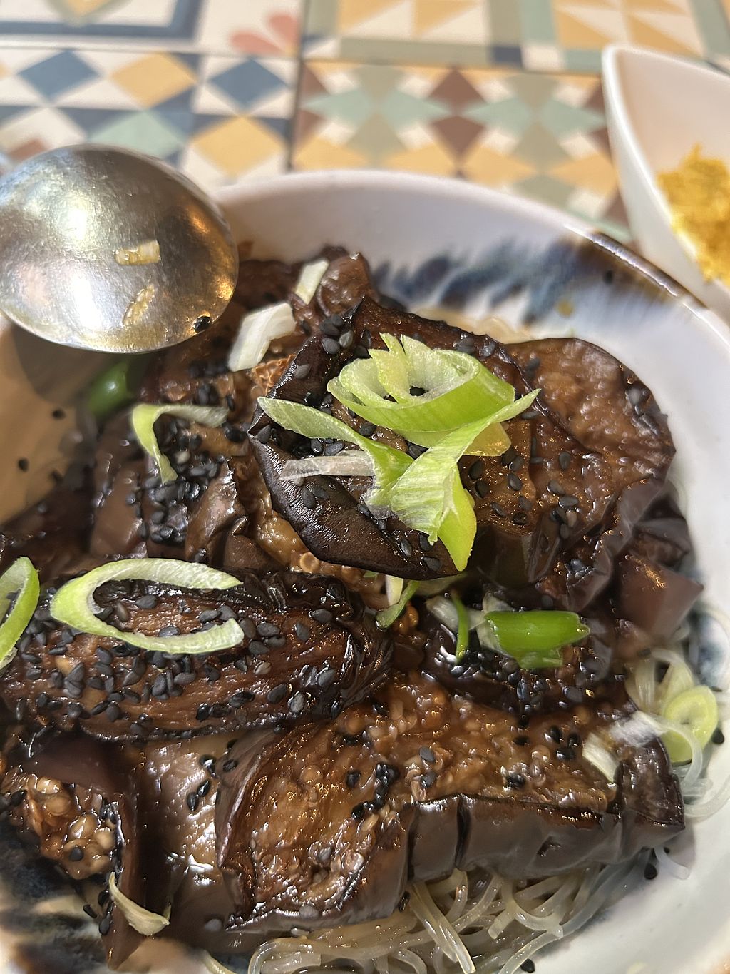 O restaurante fica aberto para almoço com menu limitado. Comi um bowl de macarrão de arroz com berinjelas maravilhoso e ainda me deram uma entradinha de pasta de cenoura deliciosa! Recomendo!