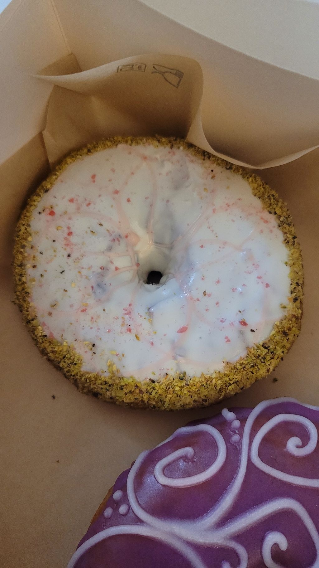 Had a white chocolate doughnut topped with pistachios and a lavender lemonade, which was a little too sweet for me