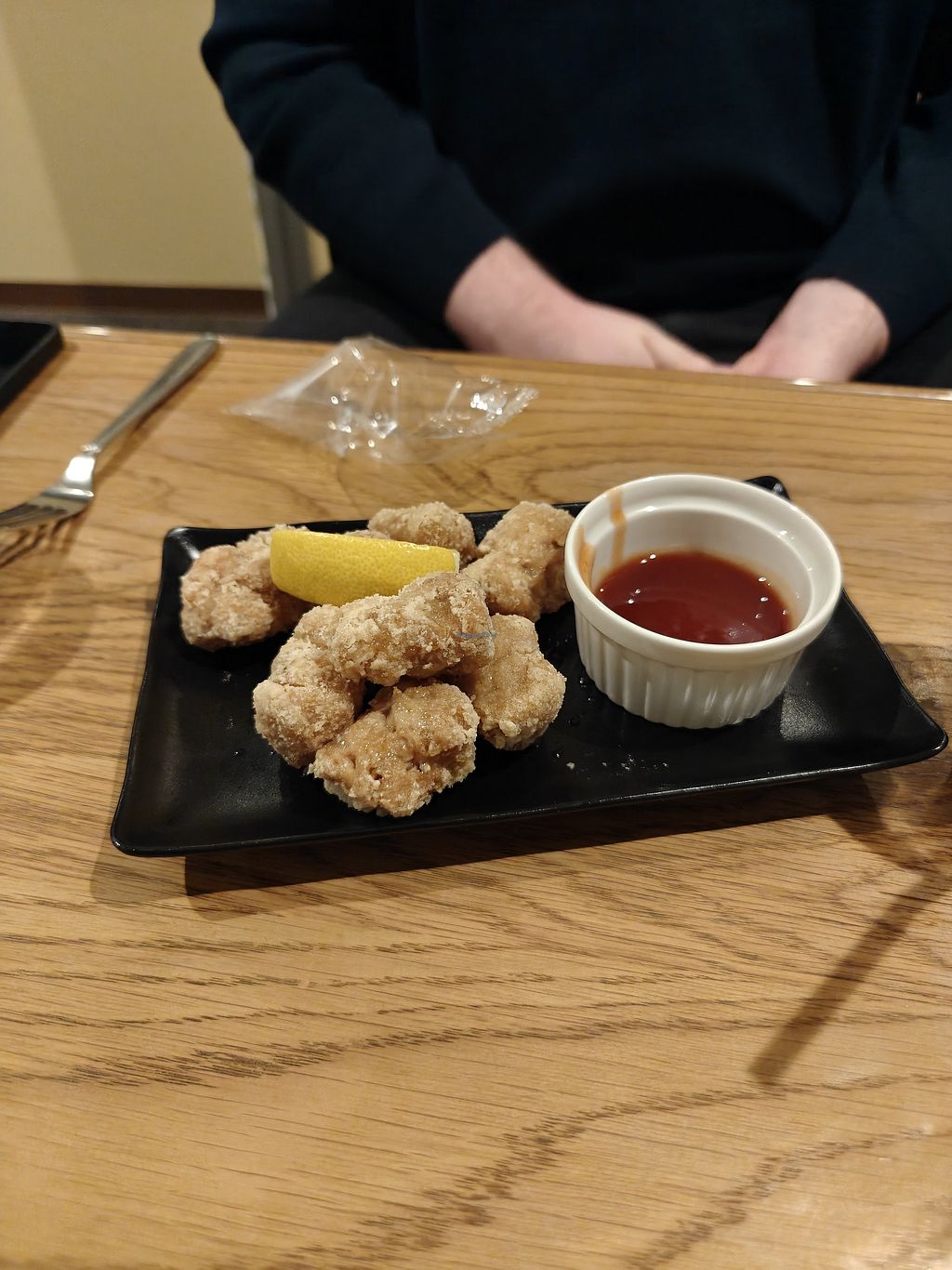 Read moreI'd give a score of 2.5 - 3. I personally wouldn't go back. The service wasn't great in my experience, and I sadly didn't feel very welcome. It was kind of difficult to locate. Went for dinner (5pm). After waiting for awhile, We were seated in a private room with a television playing random things and told to call in our order over the phone, but not speaking japanese well, the man had to come us instead. We ordered karaage, gyoza, and the salad. The salad was good, the karaage's texture was decent but could've been warmer. It had a sort of hot sauce that helped. I liked the gyoza, but it didn't have much flavor. Added a point for the matcha parfait. If anything, I recommend getting that. Minus a point for them forgetting to give us water we asked for.