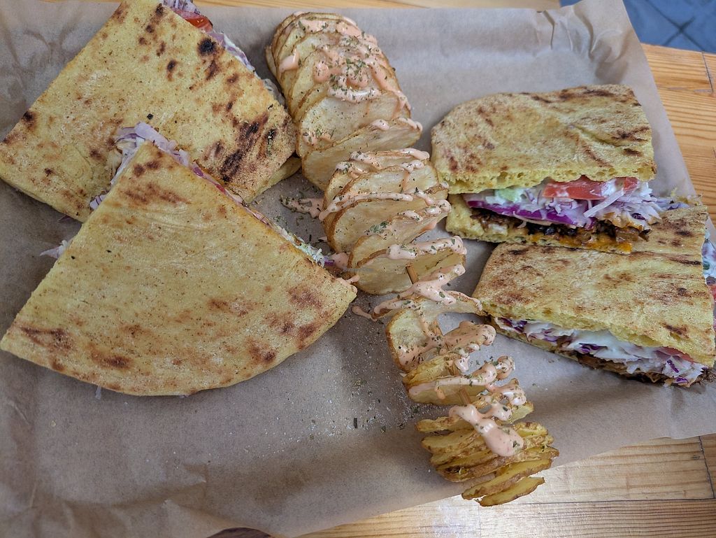 Read moreThe mushroom gyros/pitta filling was the highlight, as well as the cauliflower bites. The burger patty and ‘meatballs’ were a little soft in texture / lighter on flavour for our taste but the toppings and sauces were great. All nicely presented for a fast food place too.