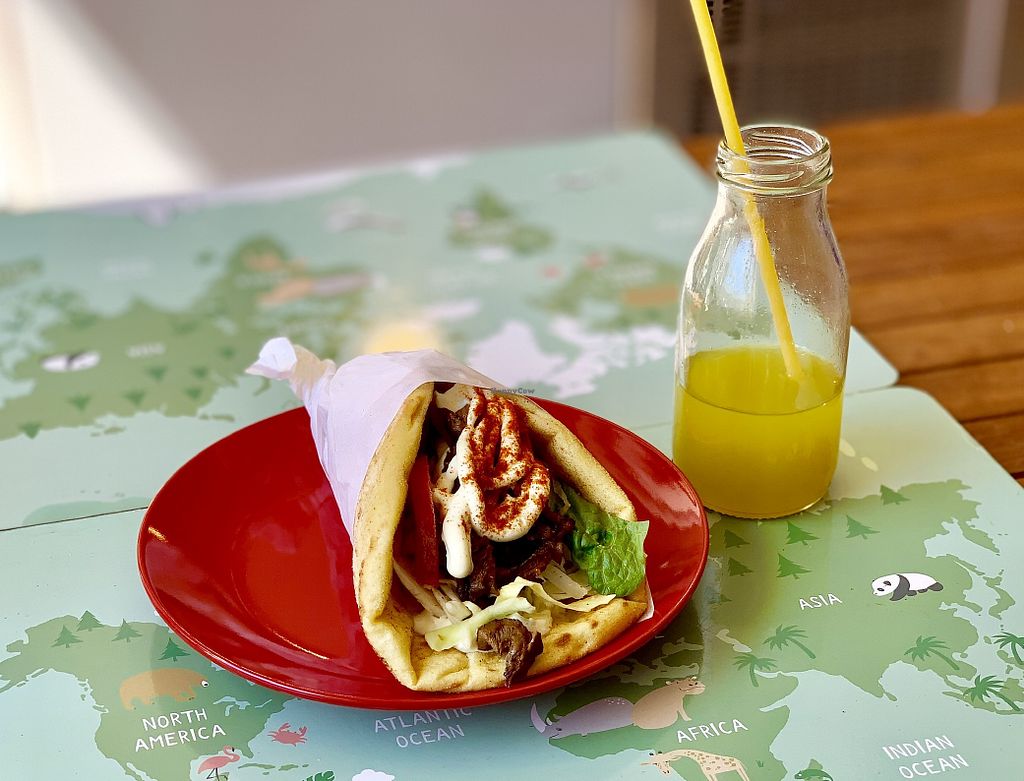 Straw made from Pasta and the best vegan Gyros! So so good!