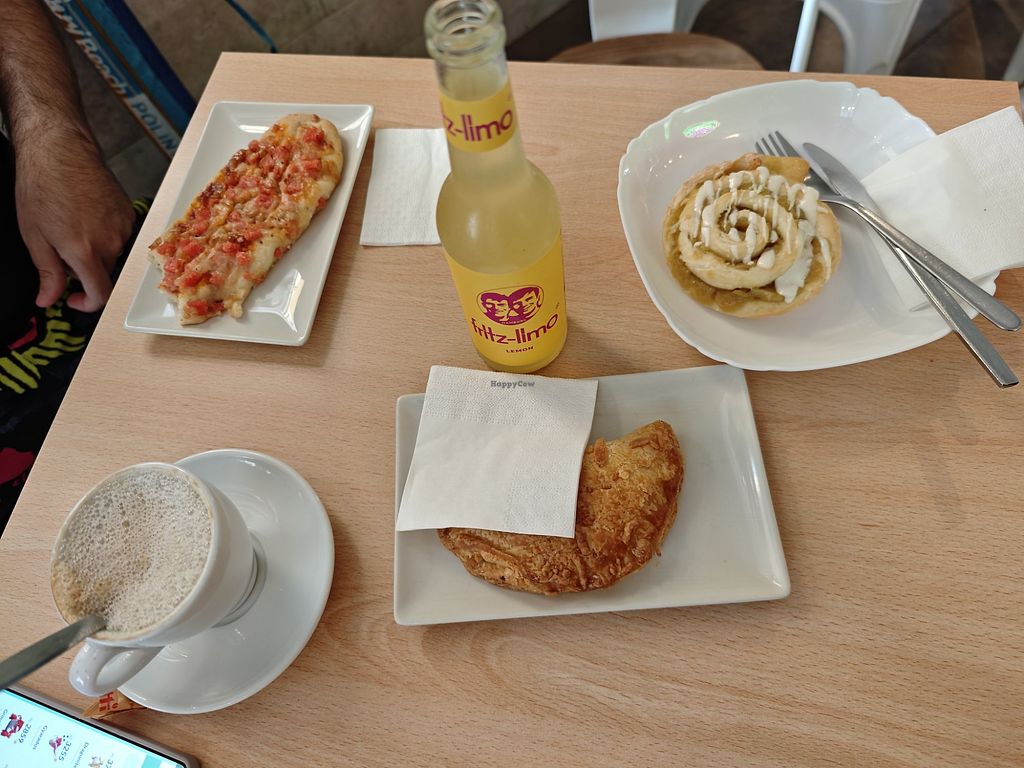 This cafe is quite amazing! It's in the center of Alicante. You can choose between breakfast, cakes, cookies, waffles, donuts, cinnamon rolls and some savoury baked goods like baked pizza pieces etc.