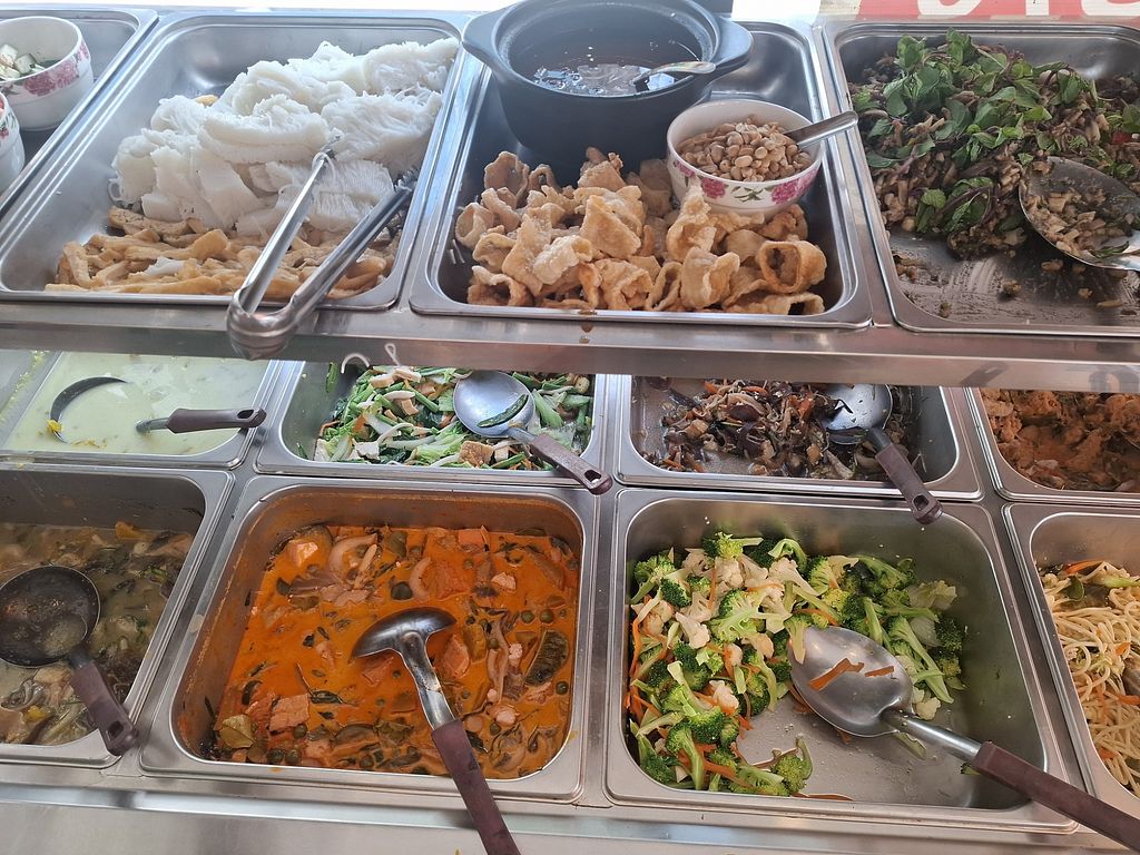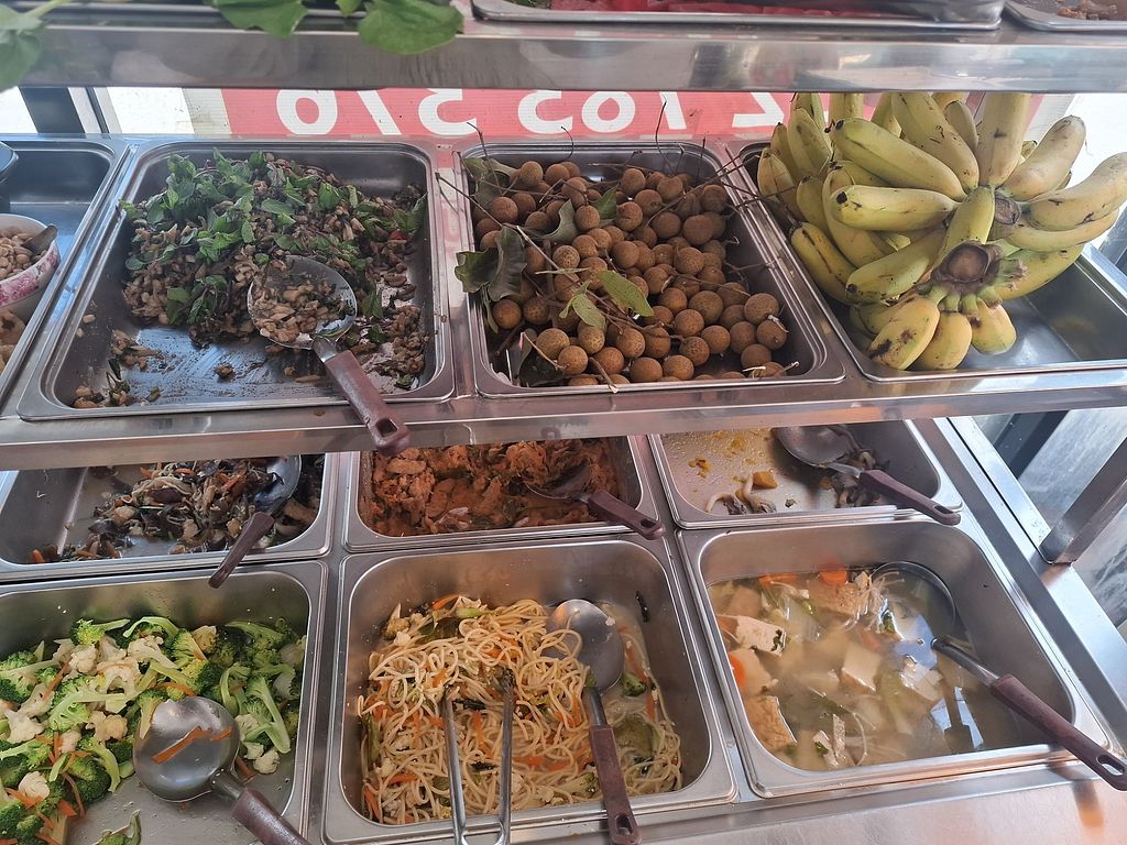 Pros: 100% vegan, Delicious warm food, 80kip for buffet, value for money