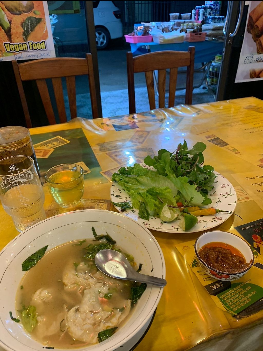 A huge selection of vegan dishes to choose from. They have photos of all sorts of dishes literally posted as wall paper! 🤩 I had my feast of tofu, mushrooms, broccoli and soup as soon as I landed in Vientiane, no time wasted in between. The decor and lanterns standing alone in a dark, dark street corner at night somewhat remind me of Miyazaki’s Spirited Away. You won’t miss out this spot.