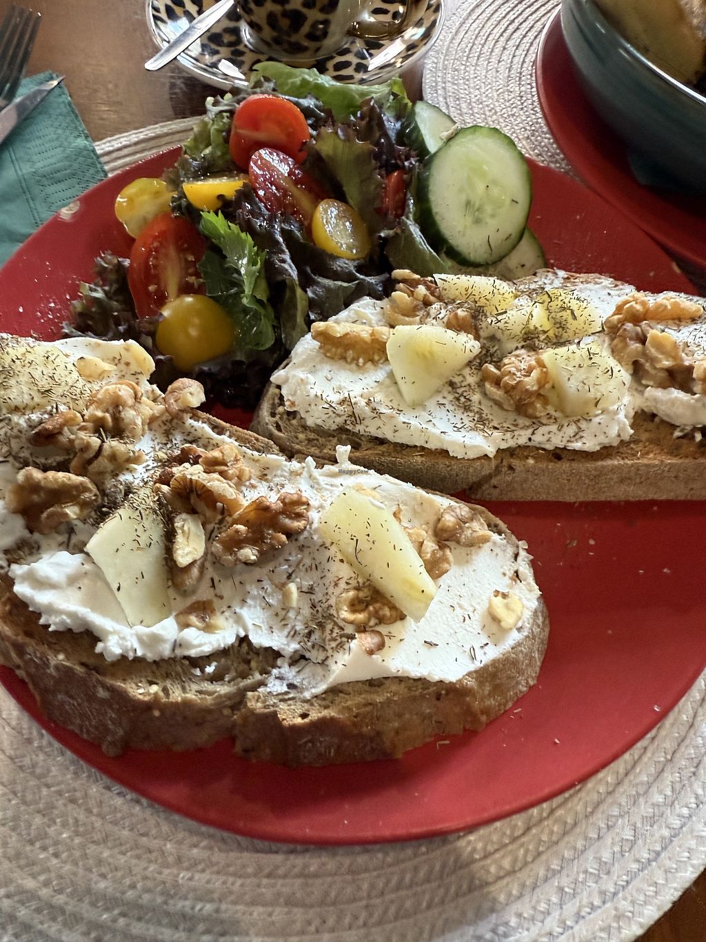The no goat cheese toastie, the chouke bowl, and the carrot pistachio cake were great. The lavender latte was a little bit too sweet for me, but that's personal preference.