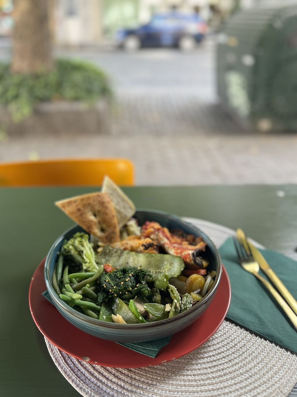 Food is really good and prices not too high. Small, cozy restaurant (some tables outside if weather allows). Friendly staff. Dogs are welcome. Food is so good that I can’t think of better. Vegan gyros was something I had not tasted ever before and will definitely eat it again.