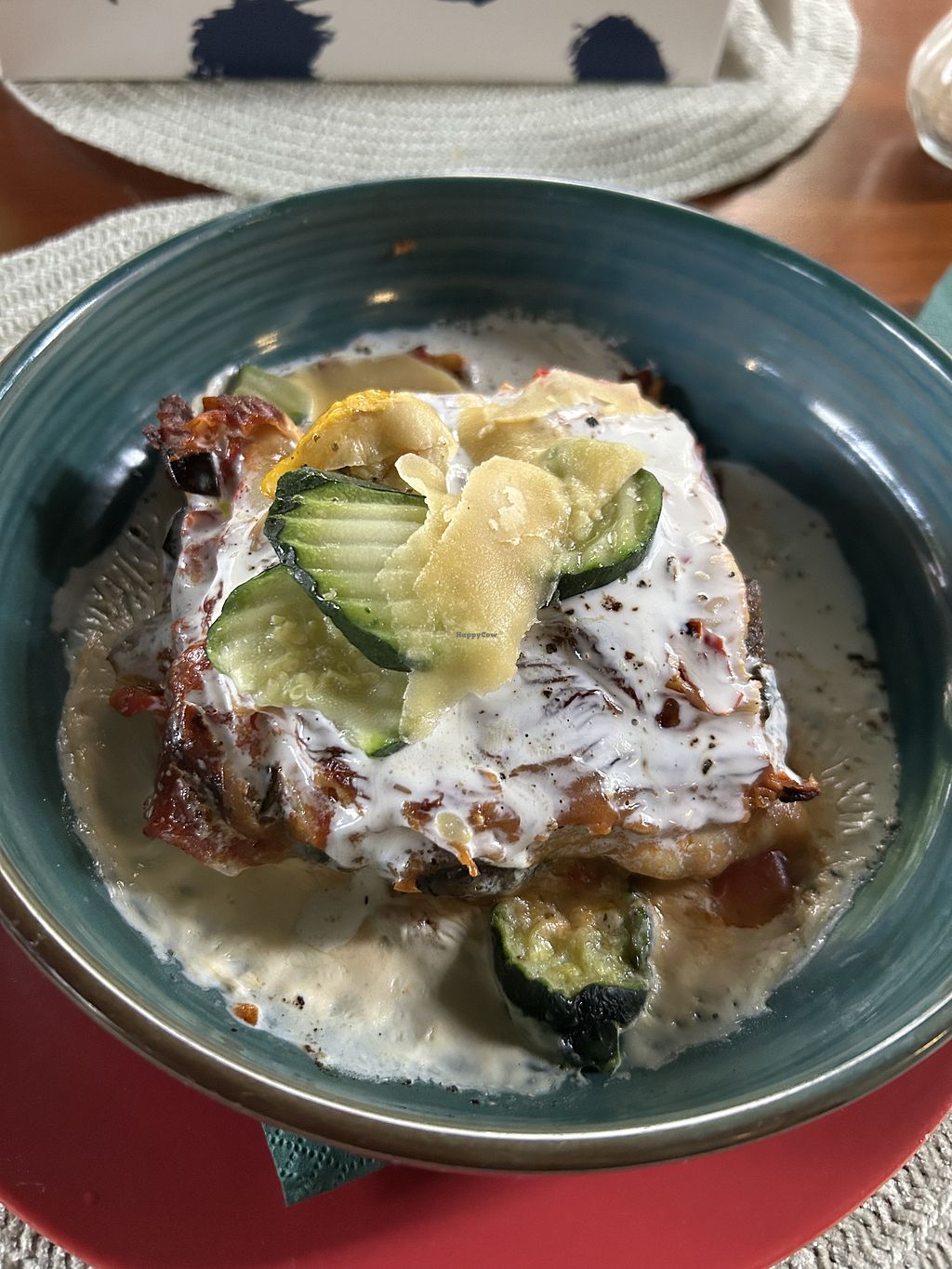 I took a little to decide and let them explain the dishes to me, I already felt a little "stupid" then. My very words then were "Does the lasagna have fake meat in it?" and without thinking a waitress said "Oh yes yes yes everything is vegan!! No meat!" So I went with the lasagna.