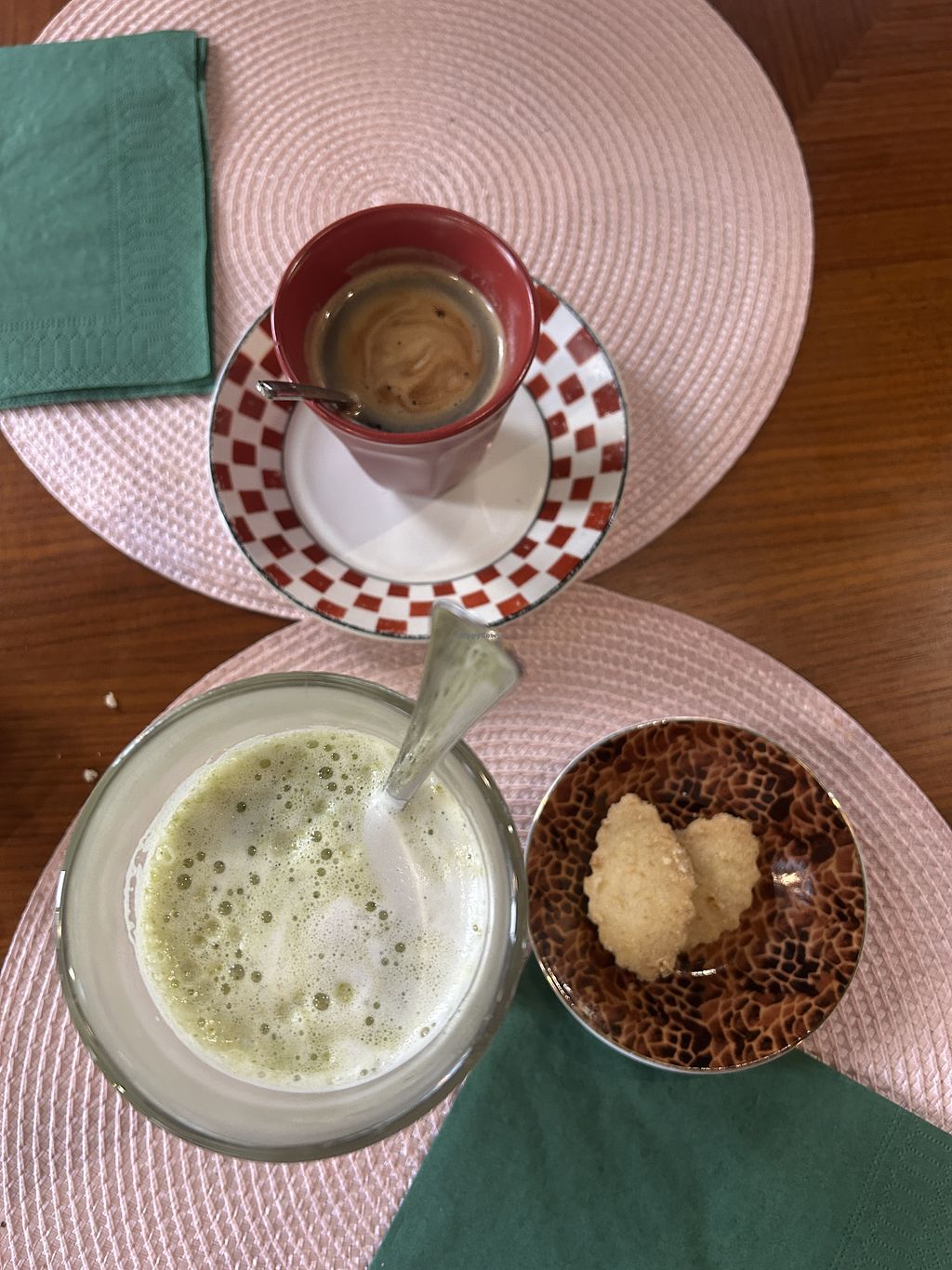 A lovely little place with a mixed, colorful interior. They have mainly savoury dishes, such as toasts, bowls and quiches but also some sweet pastries. The owner is very friendly. I had a Sunshine tea and a piece of zucchini/salmon Quiche, both were quite good. I loved that the dark green walls matched the tea pot 😀